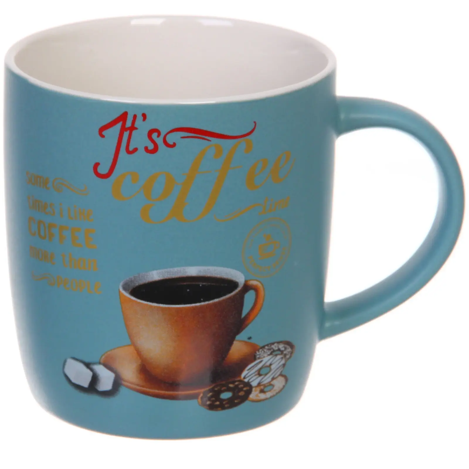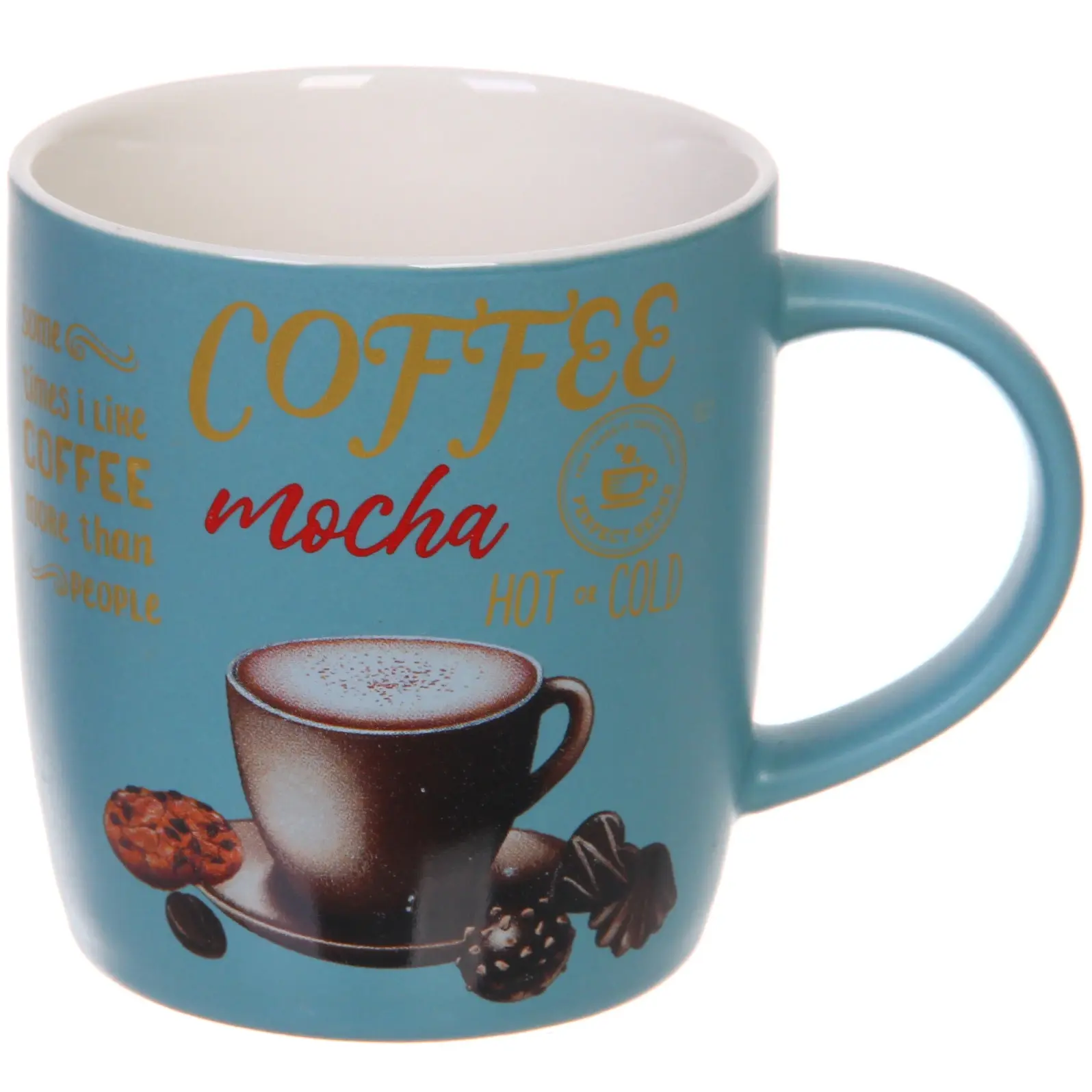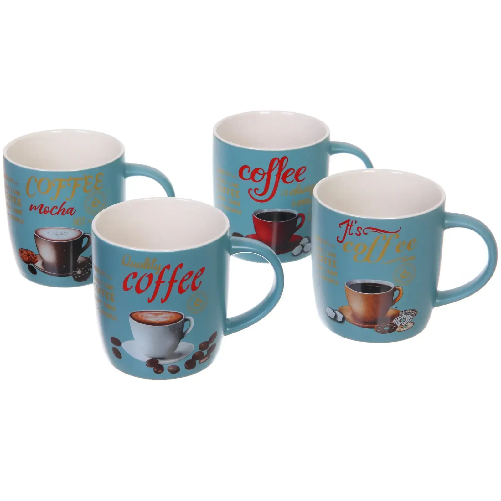 Кружка керамическая 350мл "Кофейный микс", голубая, с рисунками