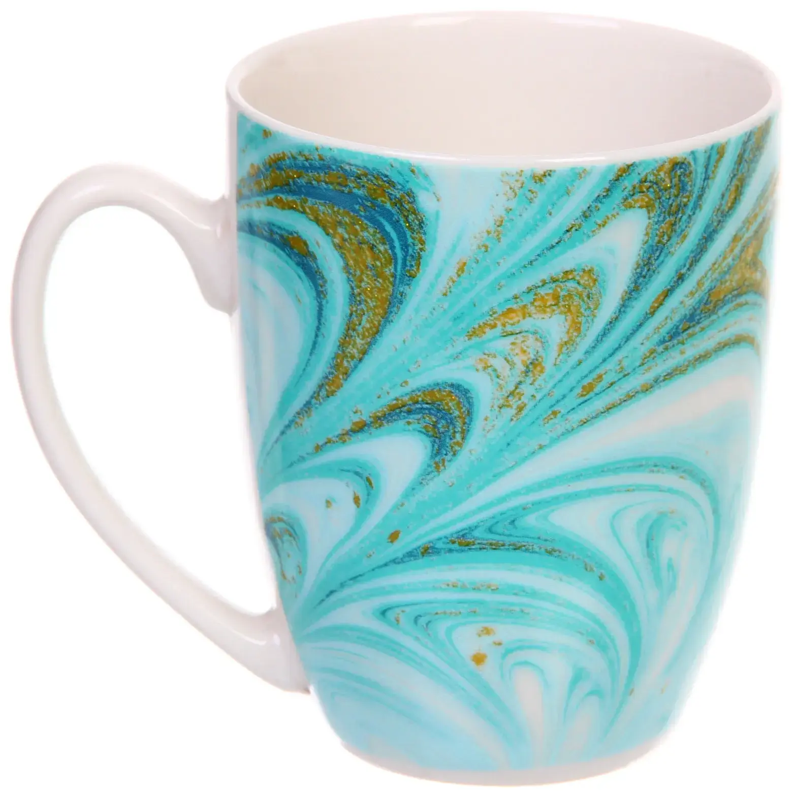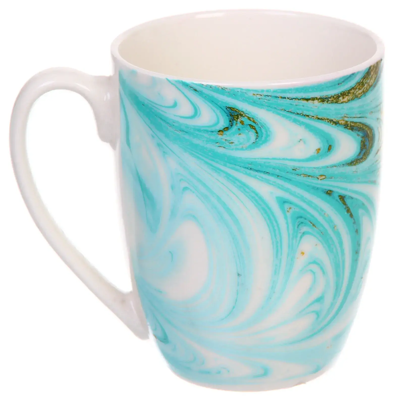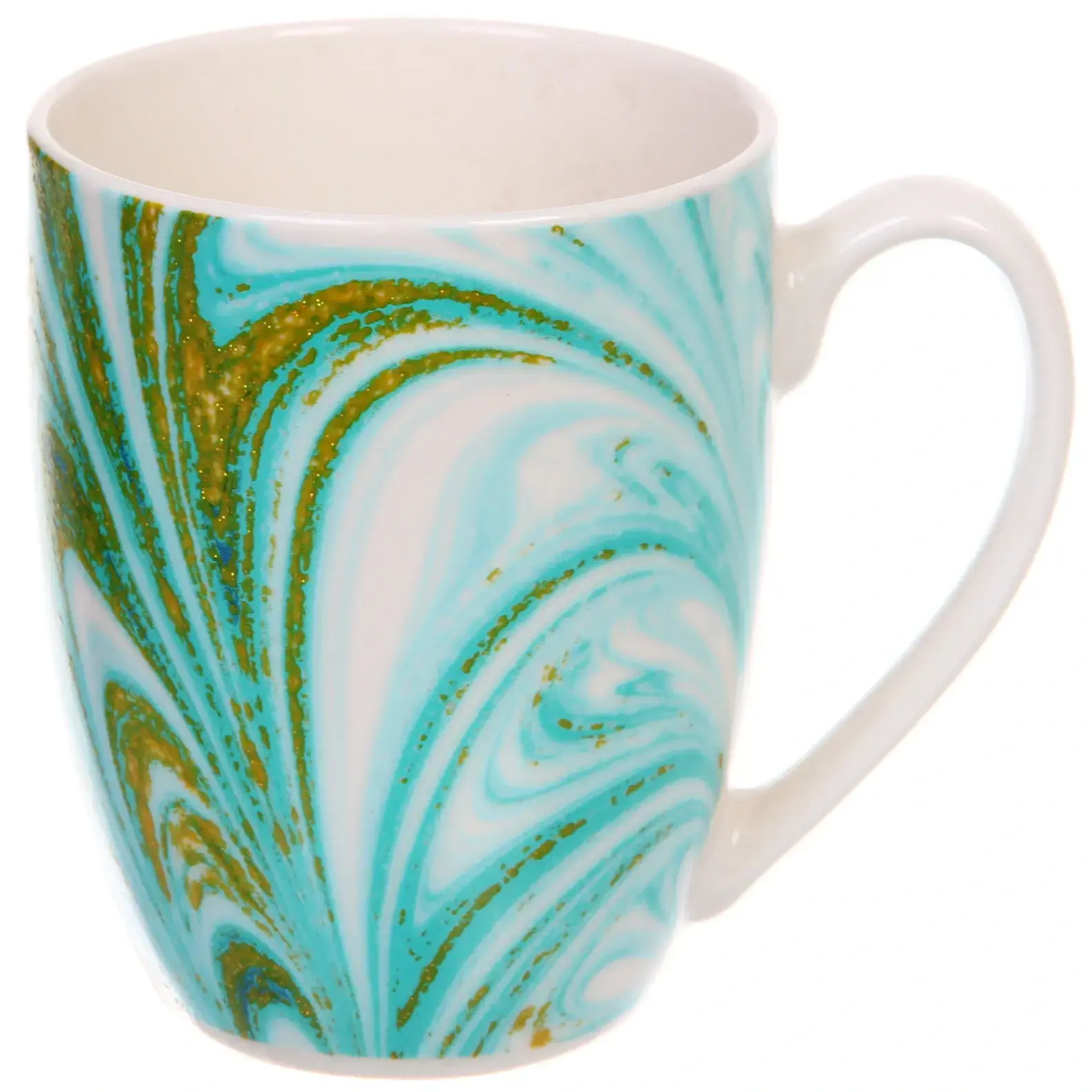 Кружка керамическая 350мл, цвет мятный/золото, узор "Малахит", для горячих напитков