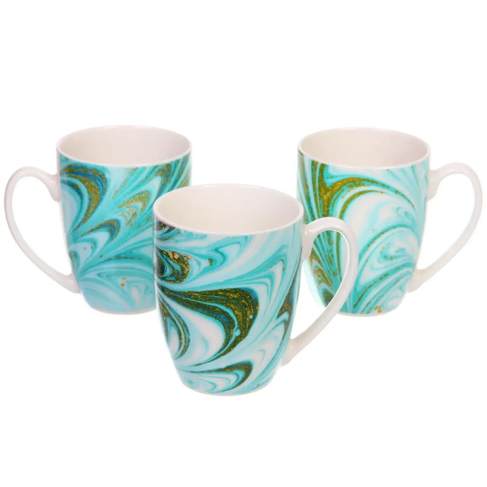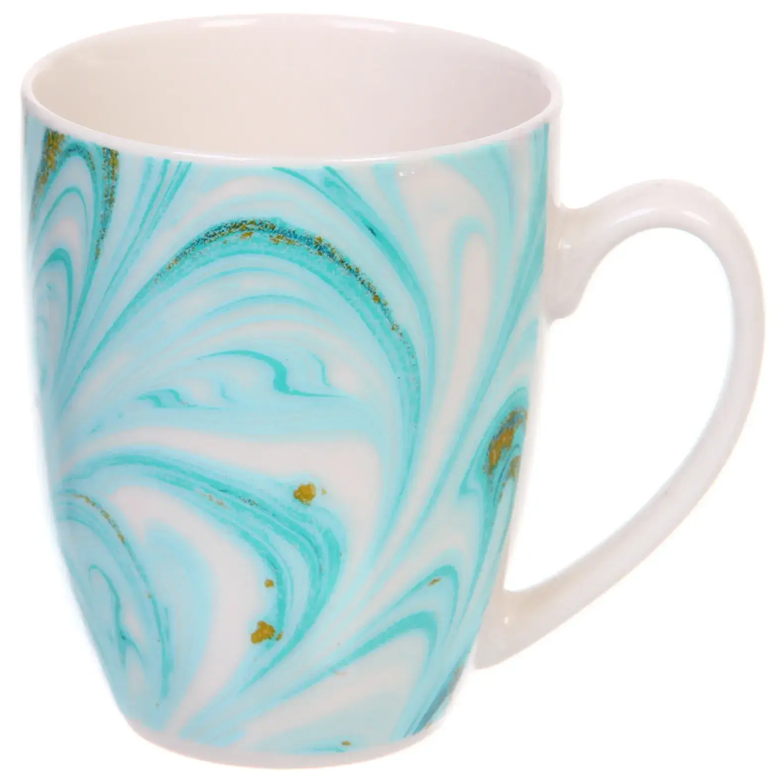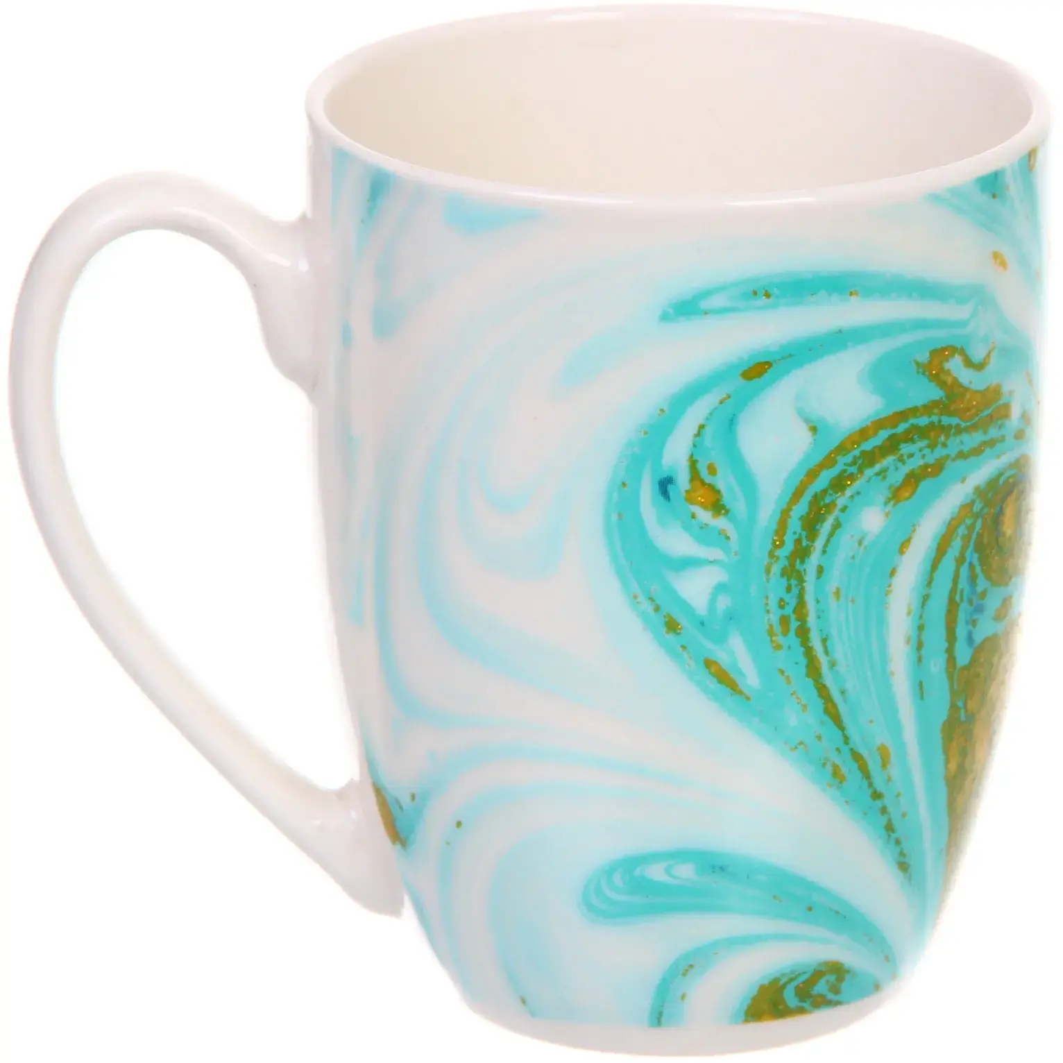 Кружка керамическая 350мл, цвет мятный/золото, узор "Малахит", для горячих напитков