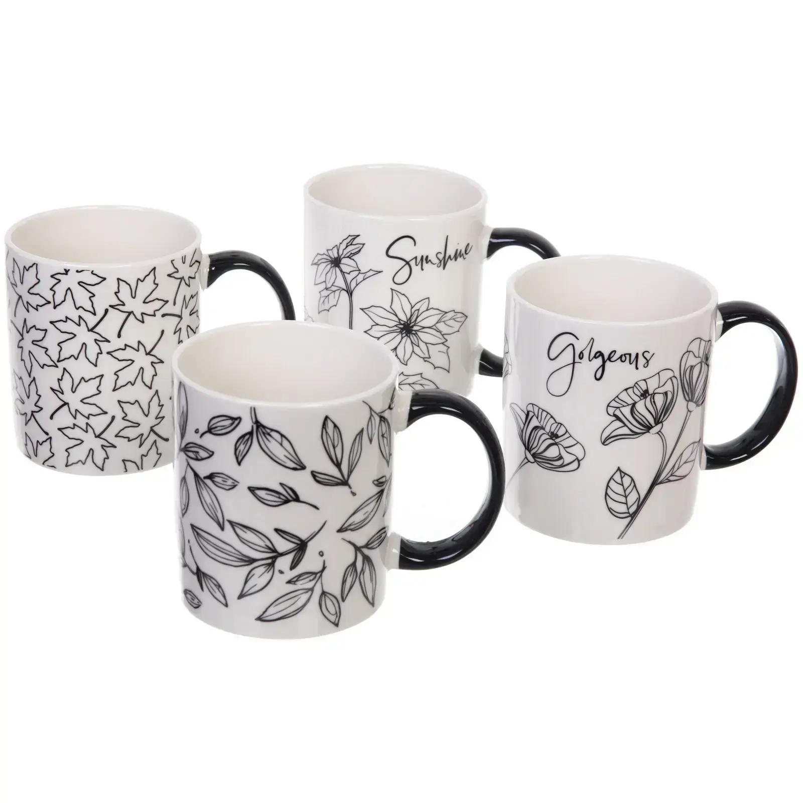 Кружка имеет стандартные размеры, что делает ее универсальной для любых напитков. Белый цвет с черным рисунком в виде листьев и надписей «Sunshine» и «Gorgeous» добавляет изюминку и делает кружку отличным подарком для друзей и близких. Не упустите возможность добавить этот стильный аксессуар в свою коллекцию кухонной посуды!