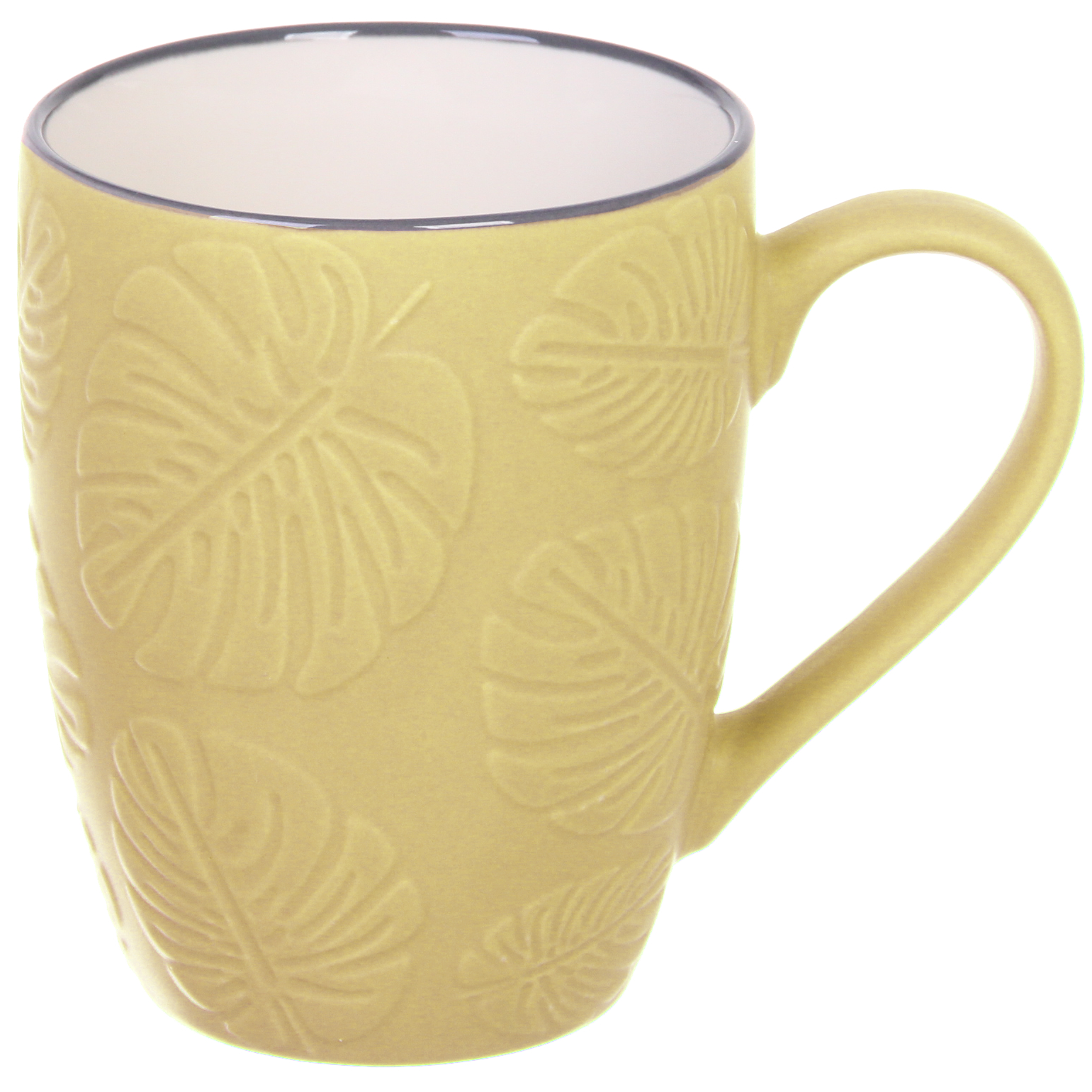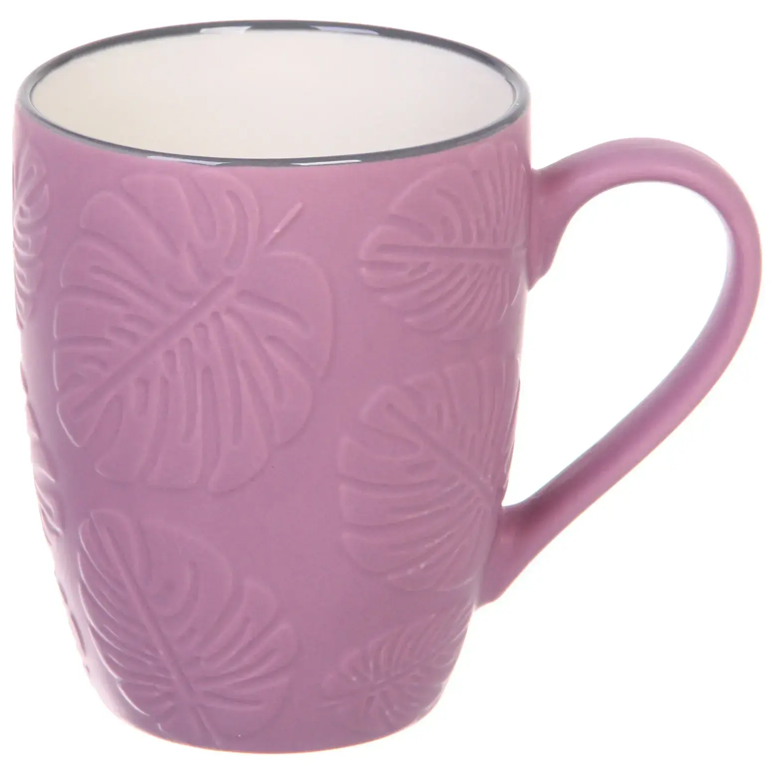 Кружка керамическая 350мл, рельефный узор "Папоротник", микс цветов