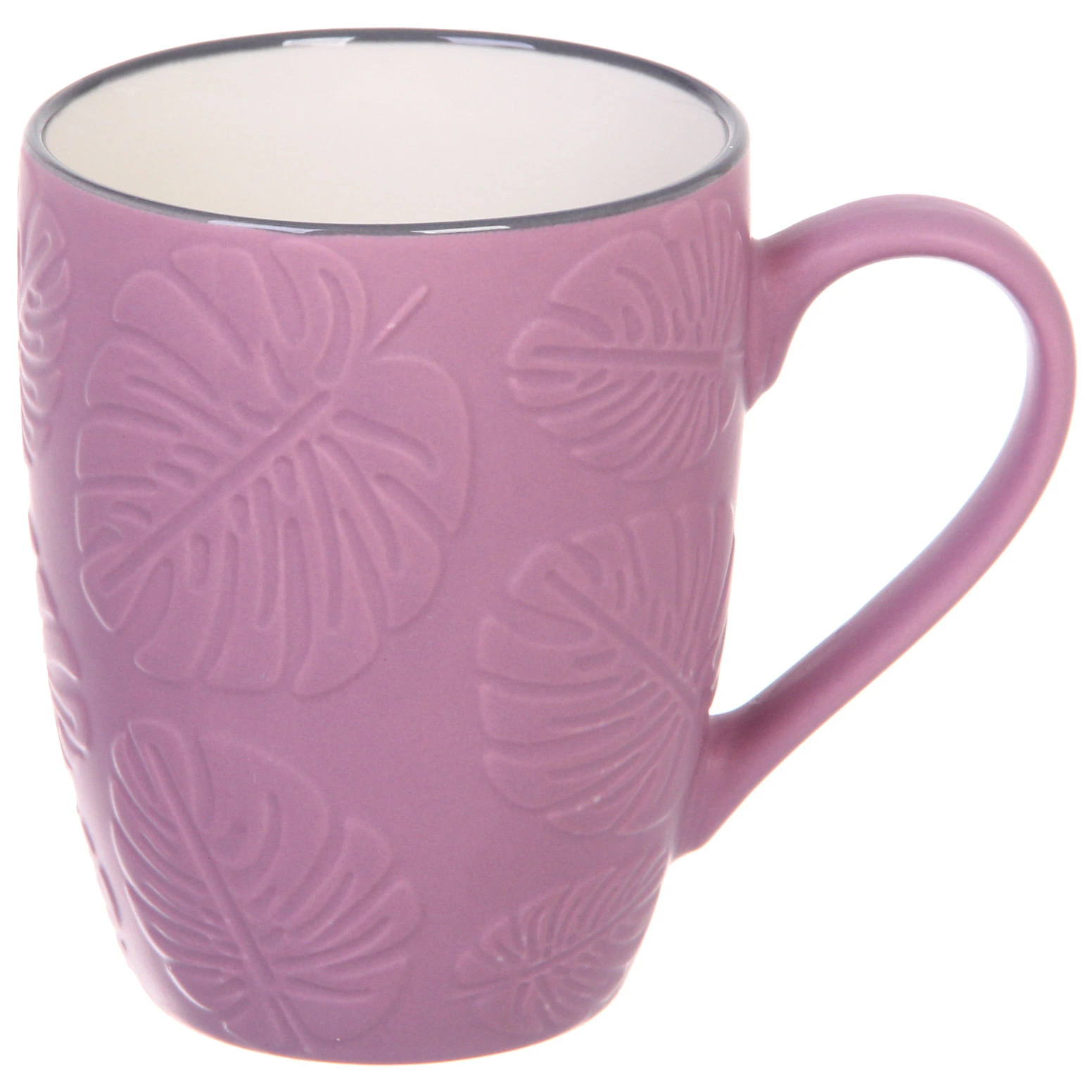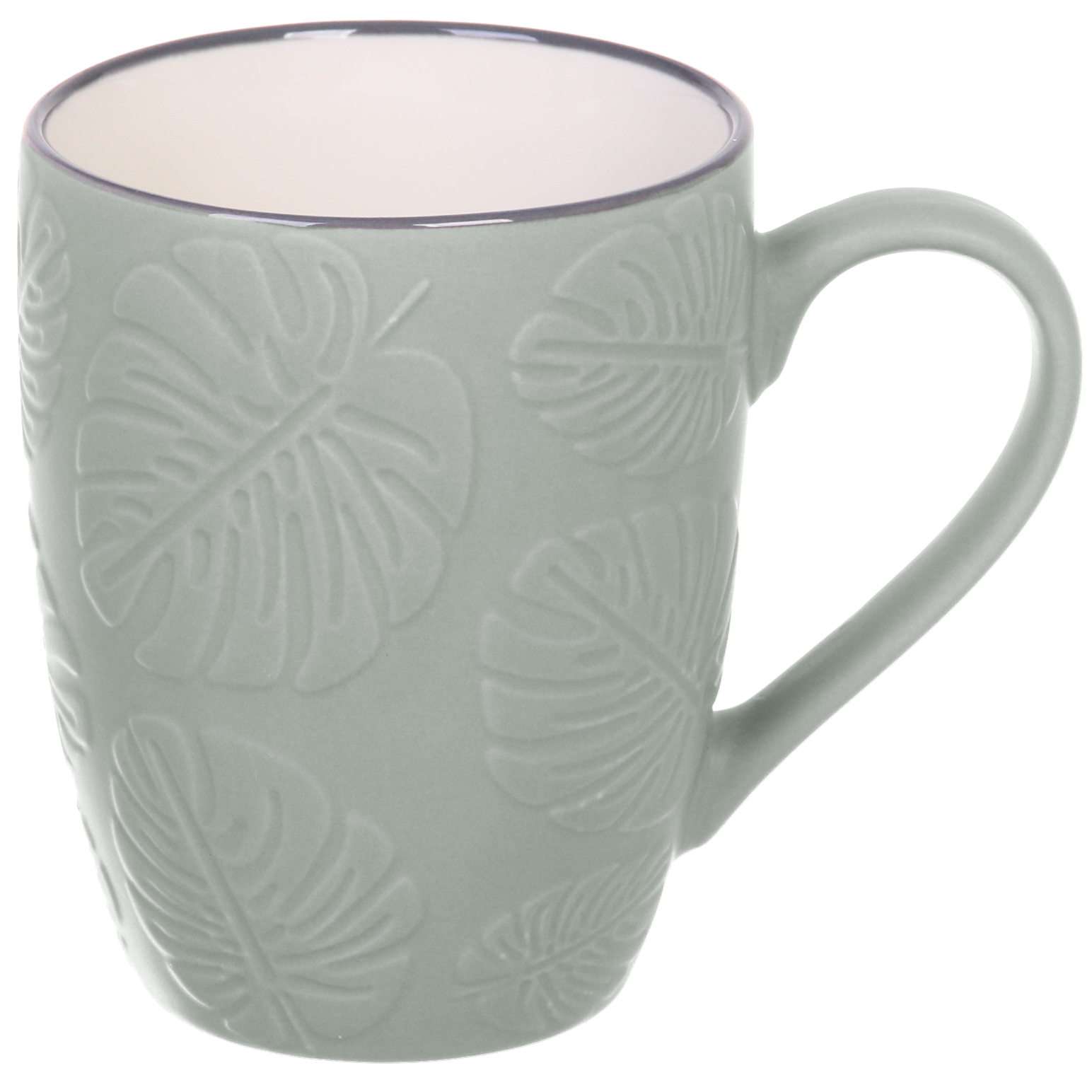 Кружка керамическая 350мл, рельефный узор "Папоротник", разноцветный принт