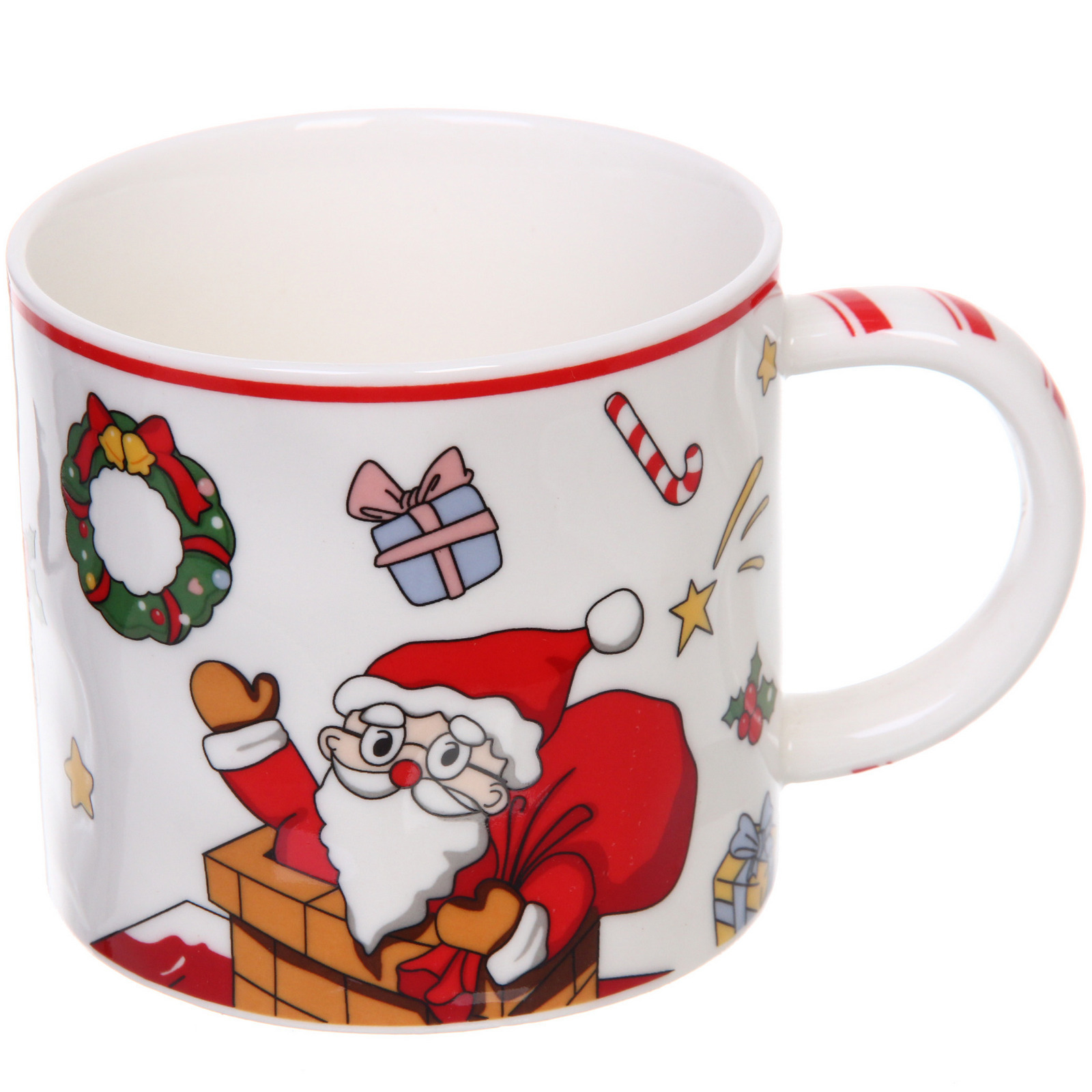 Кружка выполнена из качественной керамики, что гарантирует ее долговечность и устойчивость к высоким температурам. Размеры кружки стандартные, что делает ее удобной для использования в повседневной жизни. Праздничный дизайн с изображениями Санта-Клауса и новогодних элементов делает ее отличным выбором для зимних праздников.
