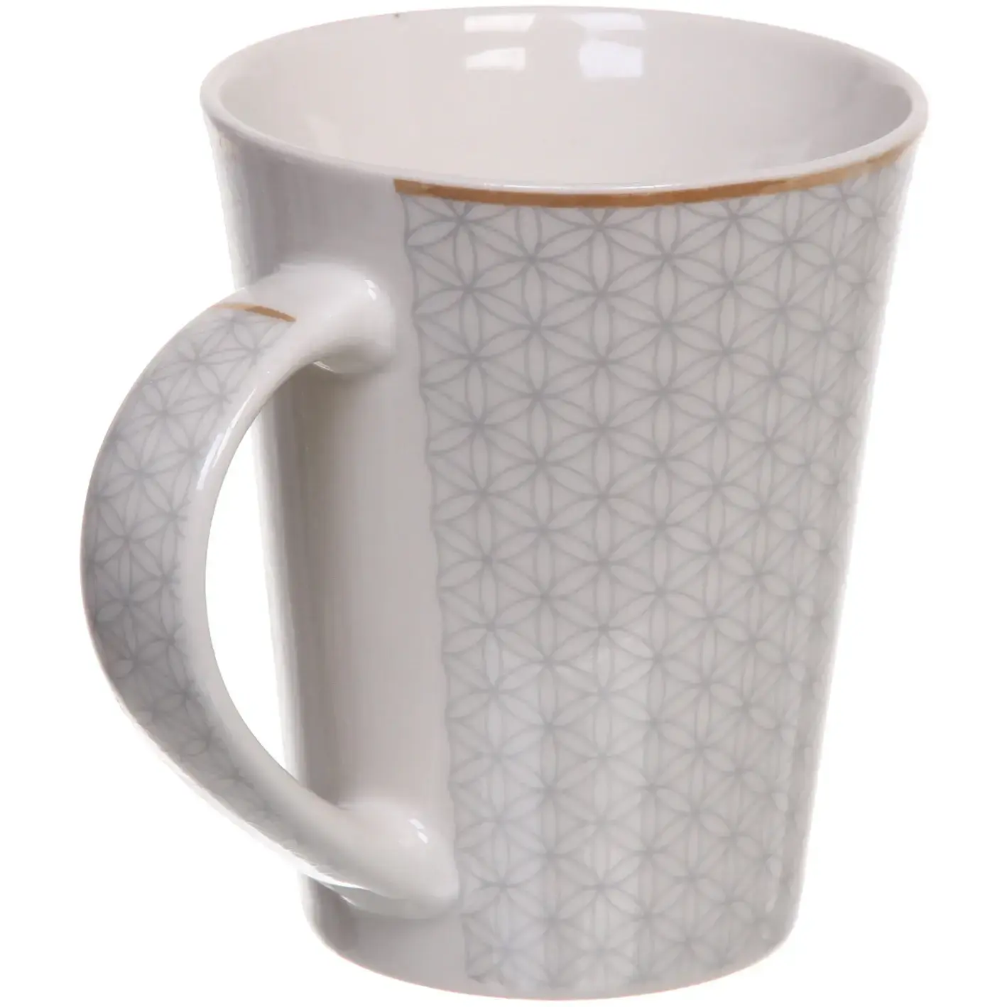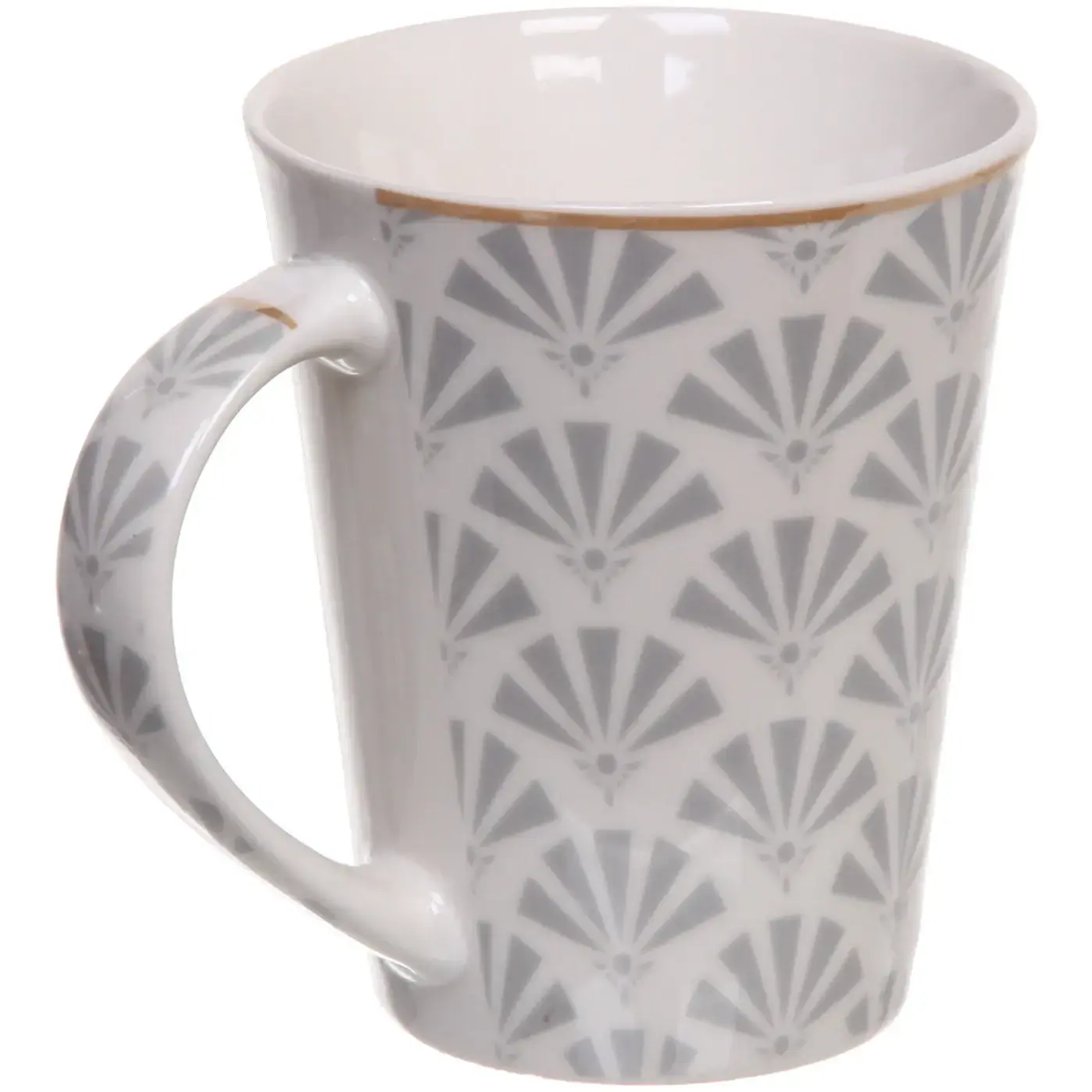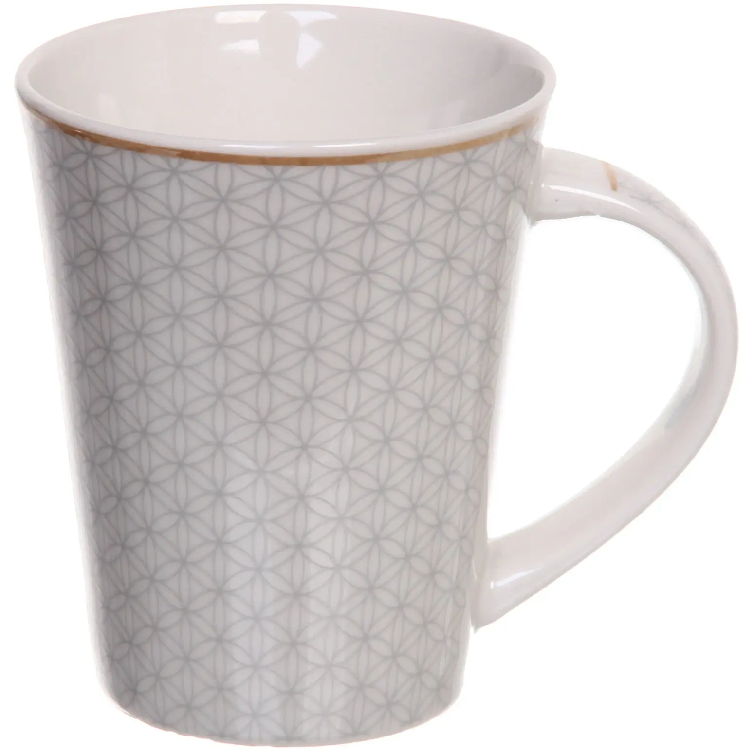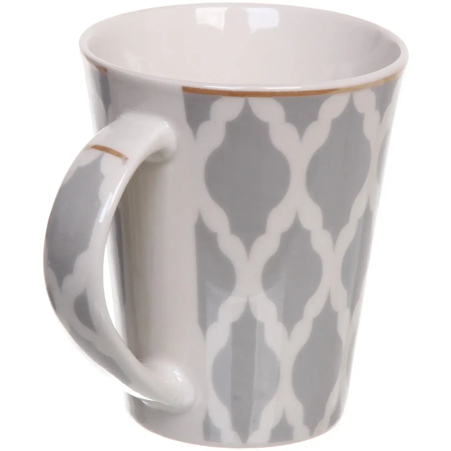 Выбирая эту кружку, вы получаете не только красивый предмет, но и практичное решение для ежедневного использования. Керамика не только сохраняет тепло напитков, но и легко очищается, что экономит ваше время на уход за посудой. Стильный серый узор добавляет изысканности, а тонкая золотистая отделка по краю придаёт кружке особый шарм.