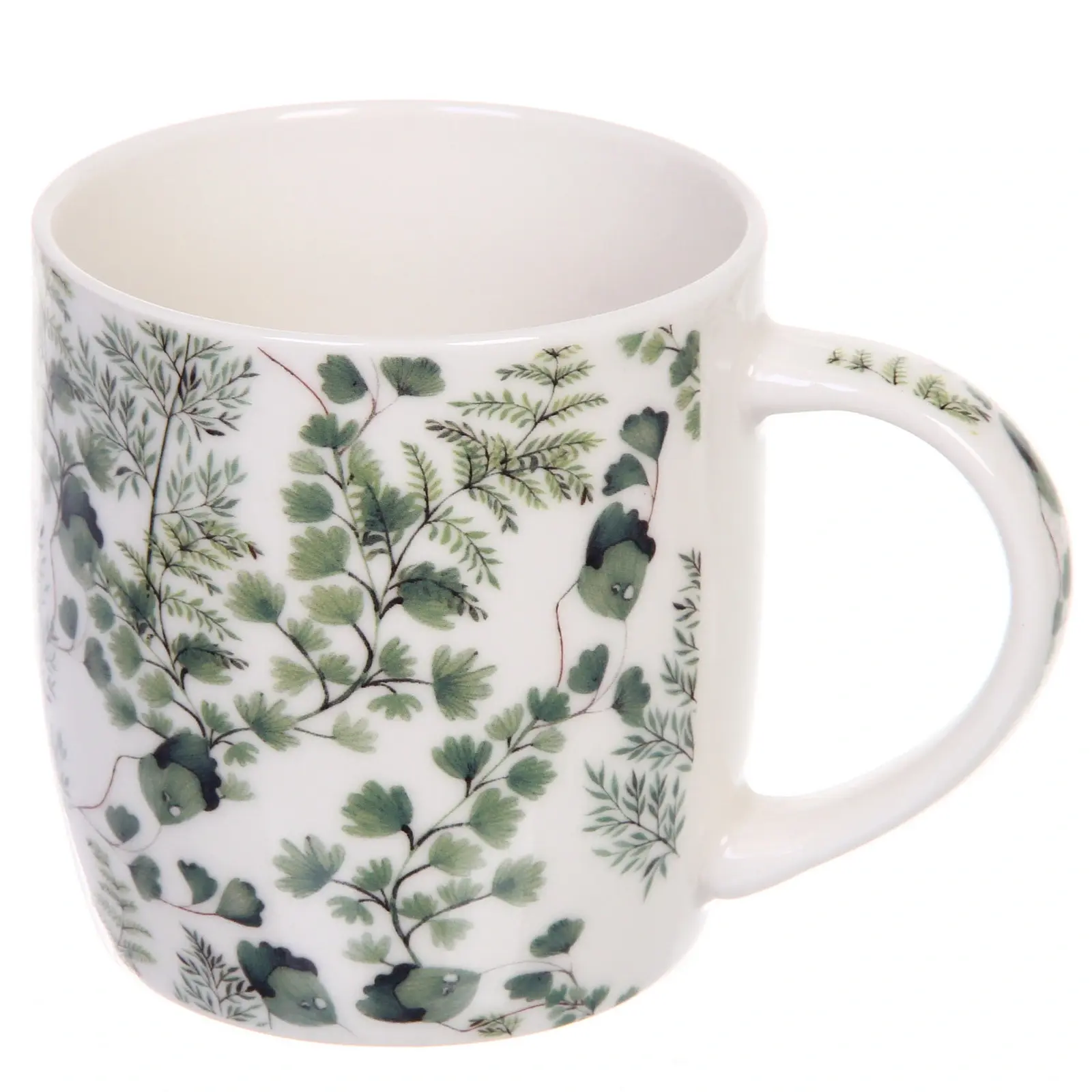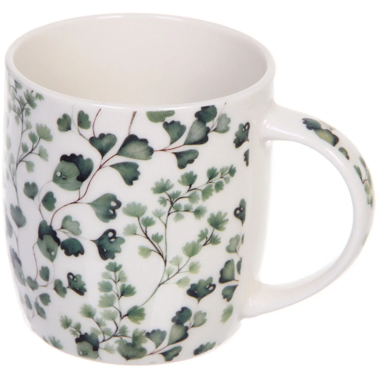 Кружка керамическая 350мл "Утренняя свежесть", цвета в ассортименте, рисунок с листьями