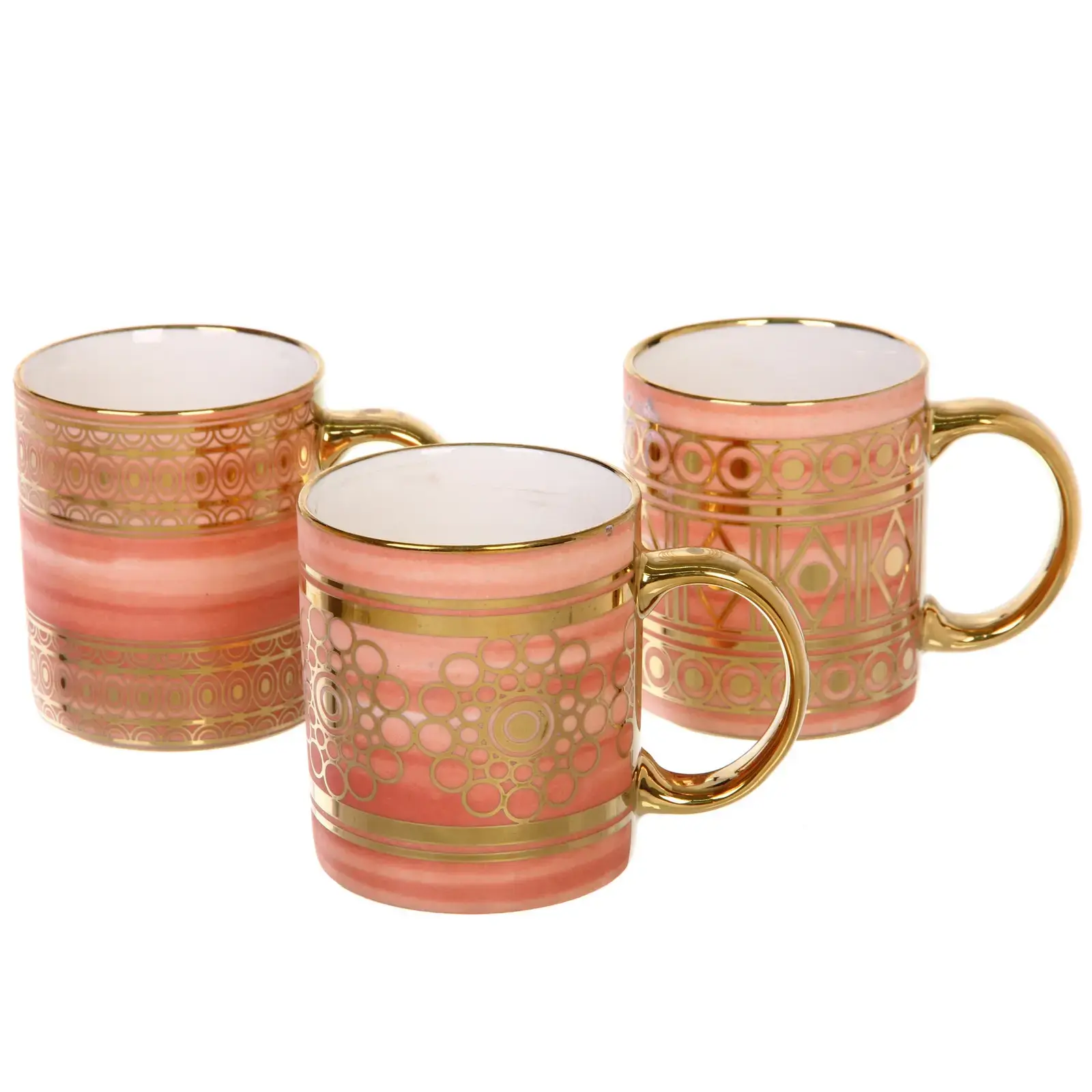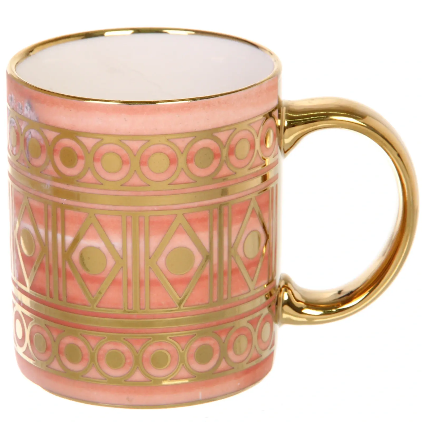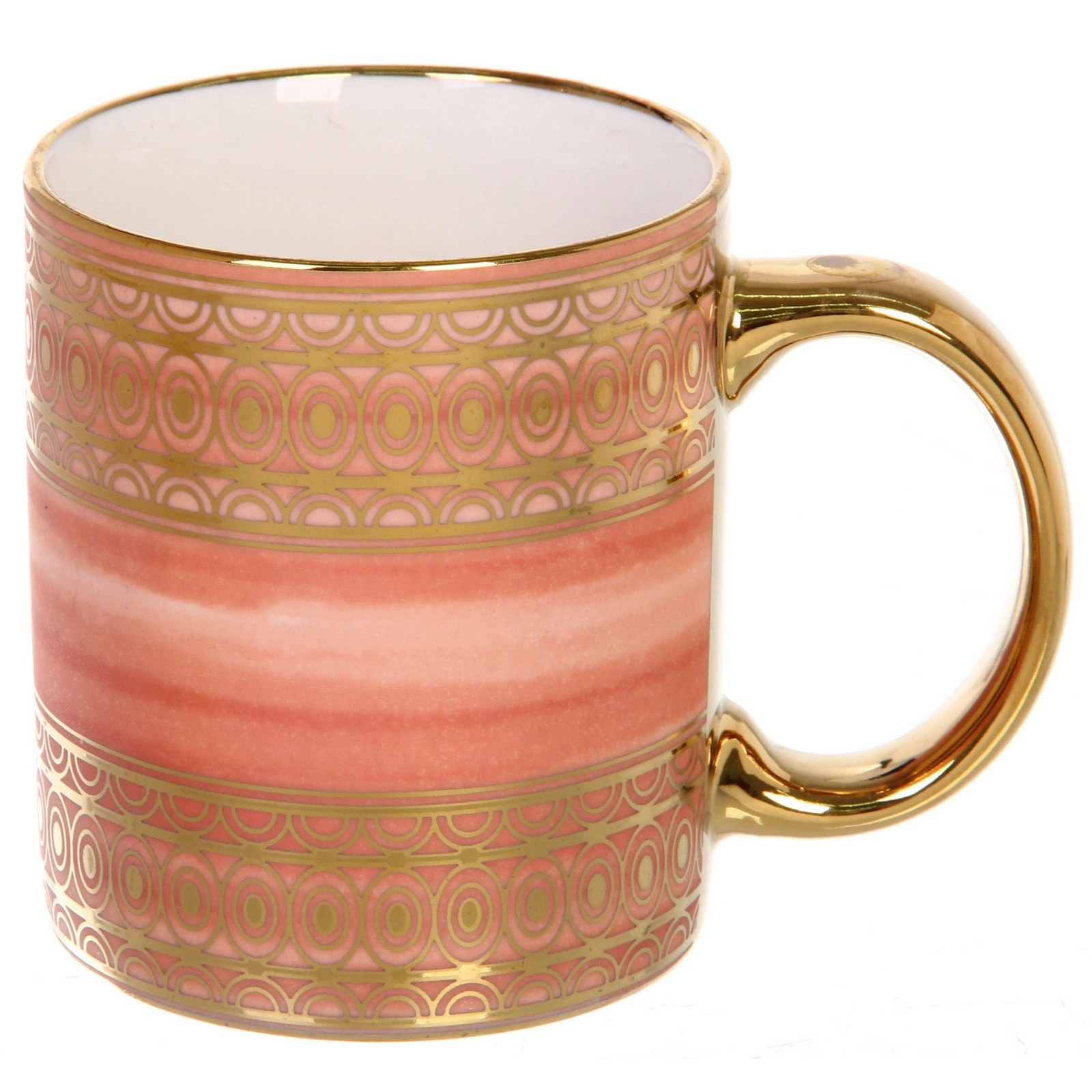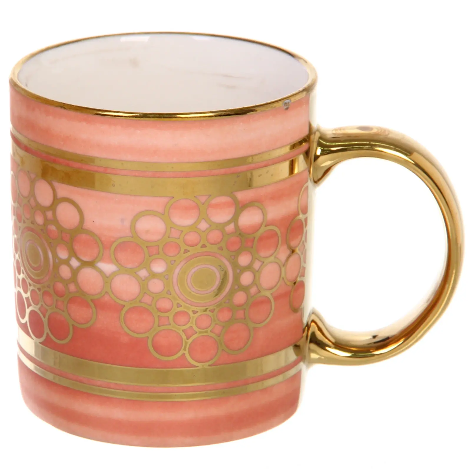 Кружка керамическая «Золотой узор», 350 мл, 1 шт., розовая с золотым декором, для чая и кофе