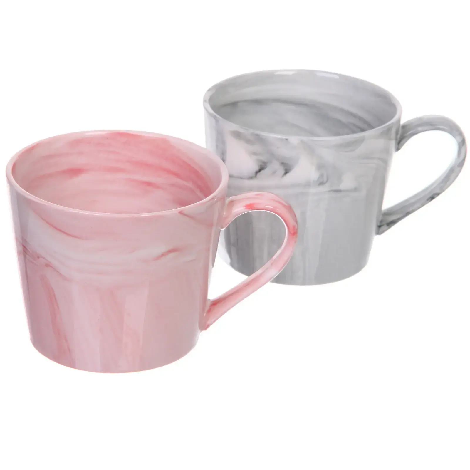 Объём кружки составляет 360 мл, что идеально подходит для порции чая или кофе. Мраморный узор в двух вариантах – розовый и серый – добавит индивидуальности вашей кухне.
