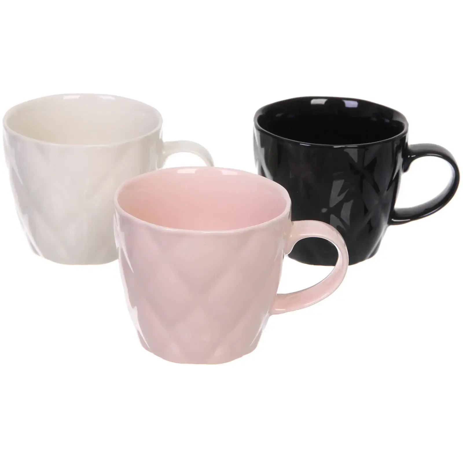 Кружка керамическая 370мл 'Ромбы', микс рисунков, белая/розовая/черная