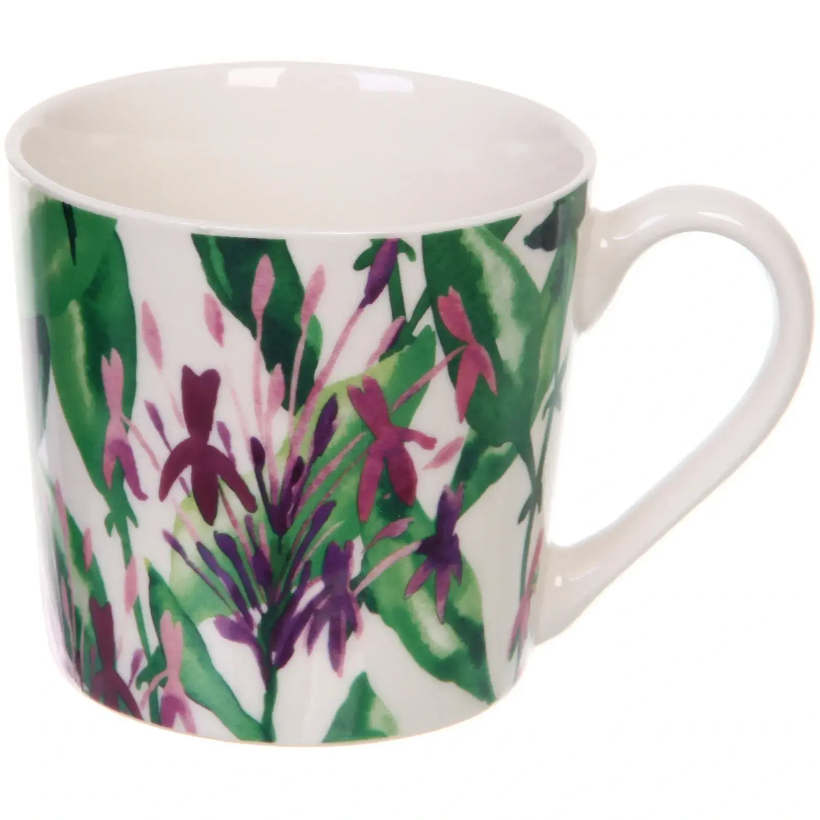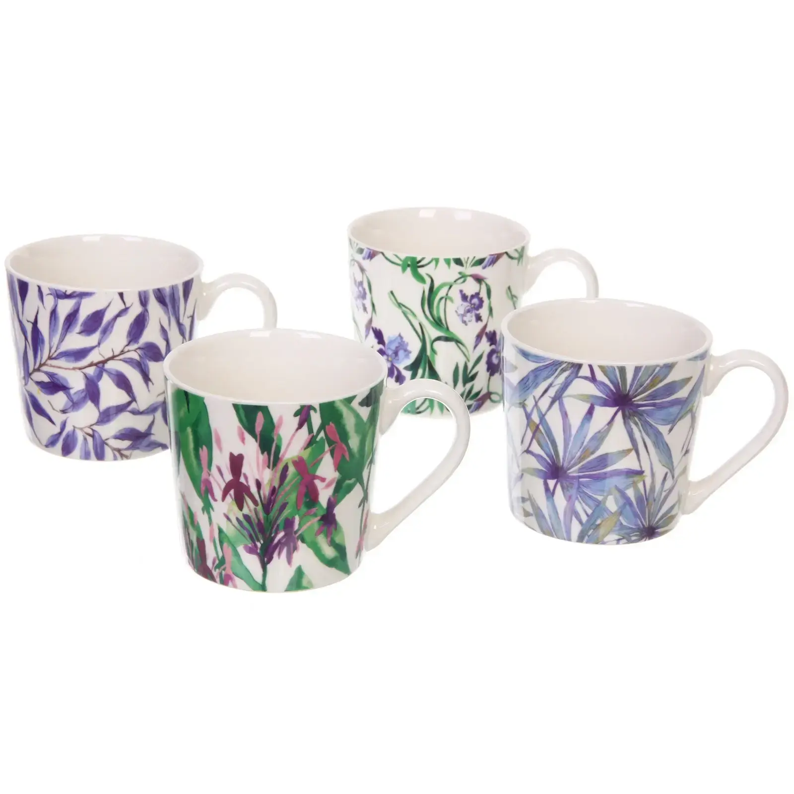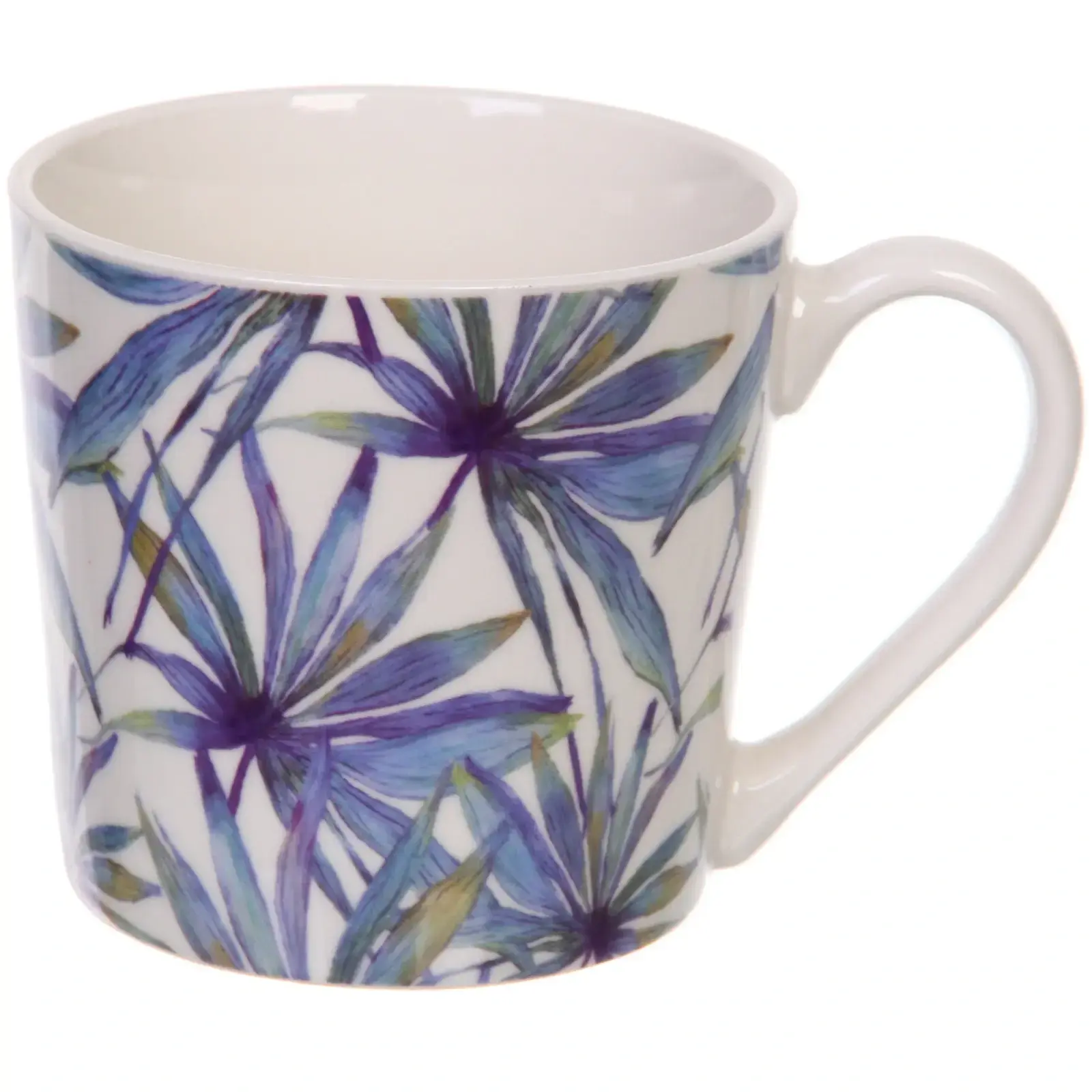 Четыре варианта цветочных мотивов в фиолетовых, синих и зеленых тонах позволяют выбрать кружку под настроение или собрать стильный комплект. Глянцевая поверхность керамики подчеркивает глубину красок, а прочная глазурь защищает рисунок от выцветания.