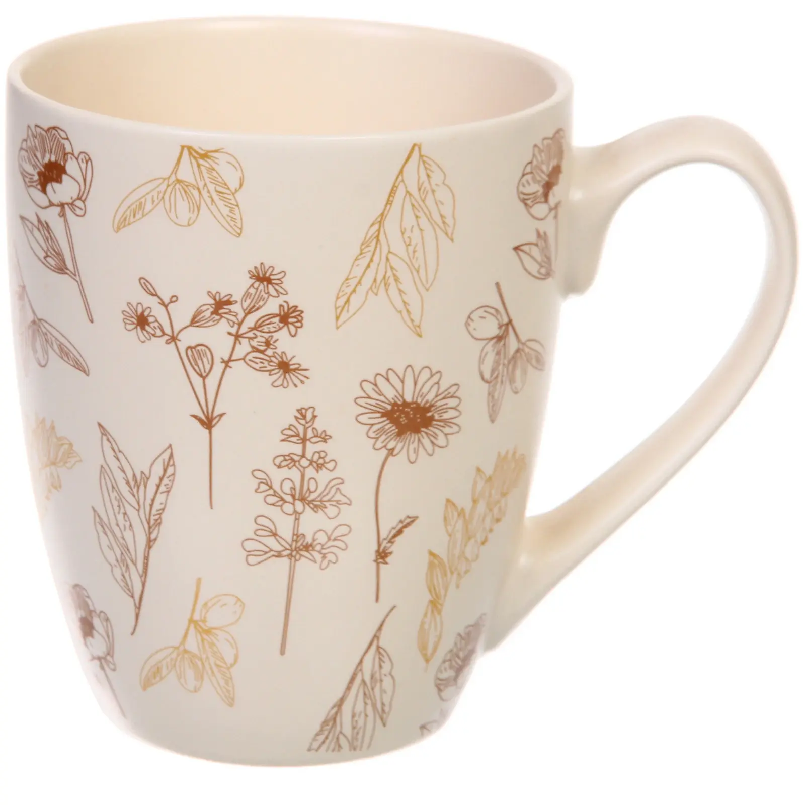 Керамическая поверхность устойчива к повседневному использованию и не требует сложного ухода. Рисунок выполнен в тонких линиях коричневых, золотистых или чёрных оттенков, что придаёт изделию универсальность. Кружка станет прекрасным дополнением к вашей кухне или подарком близким, ценящим уют и стиль.