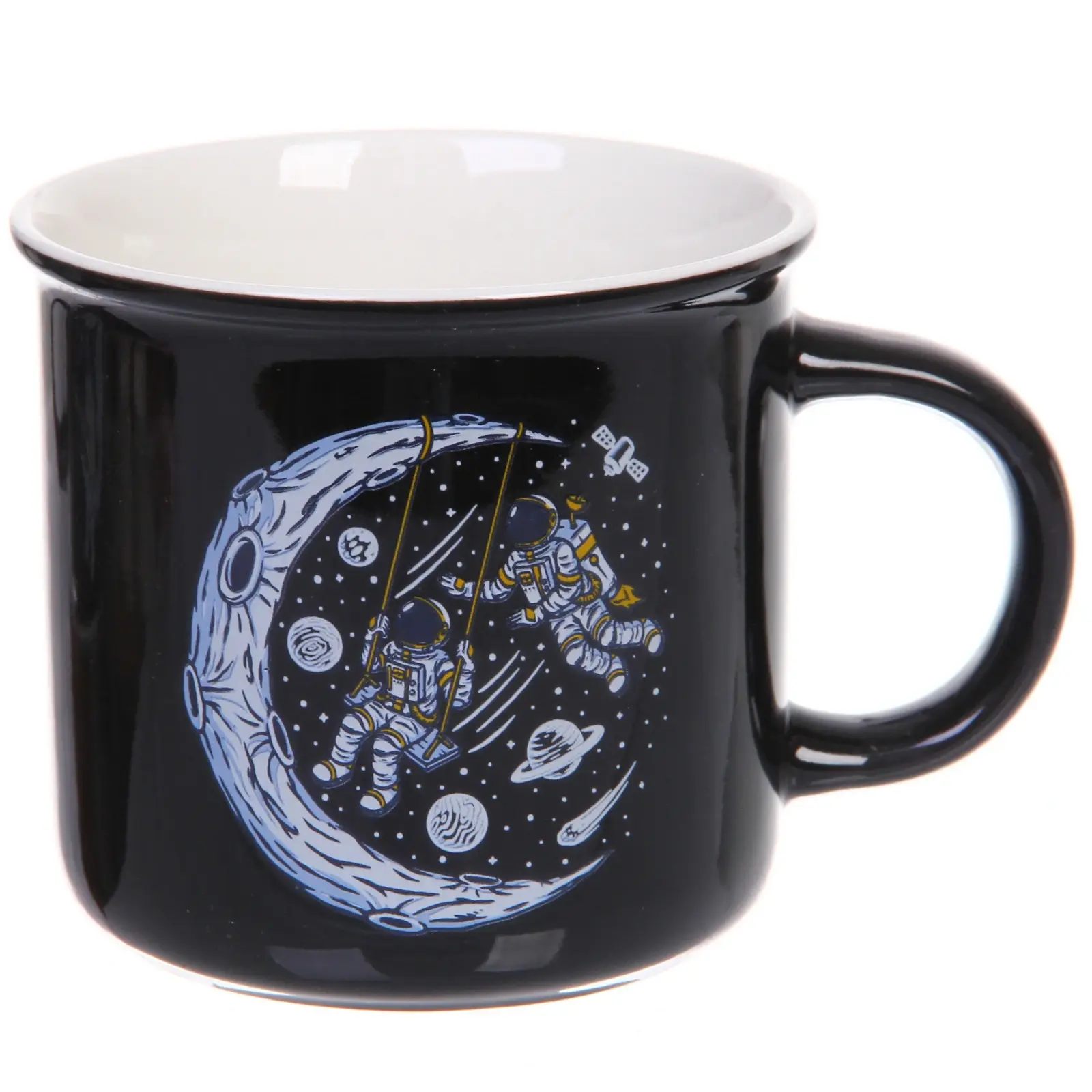 Кружка керамическая 390мл "Космонавт", черная/белая, для горячих напитков