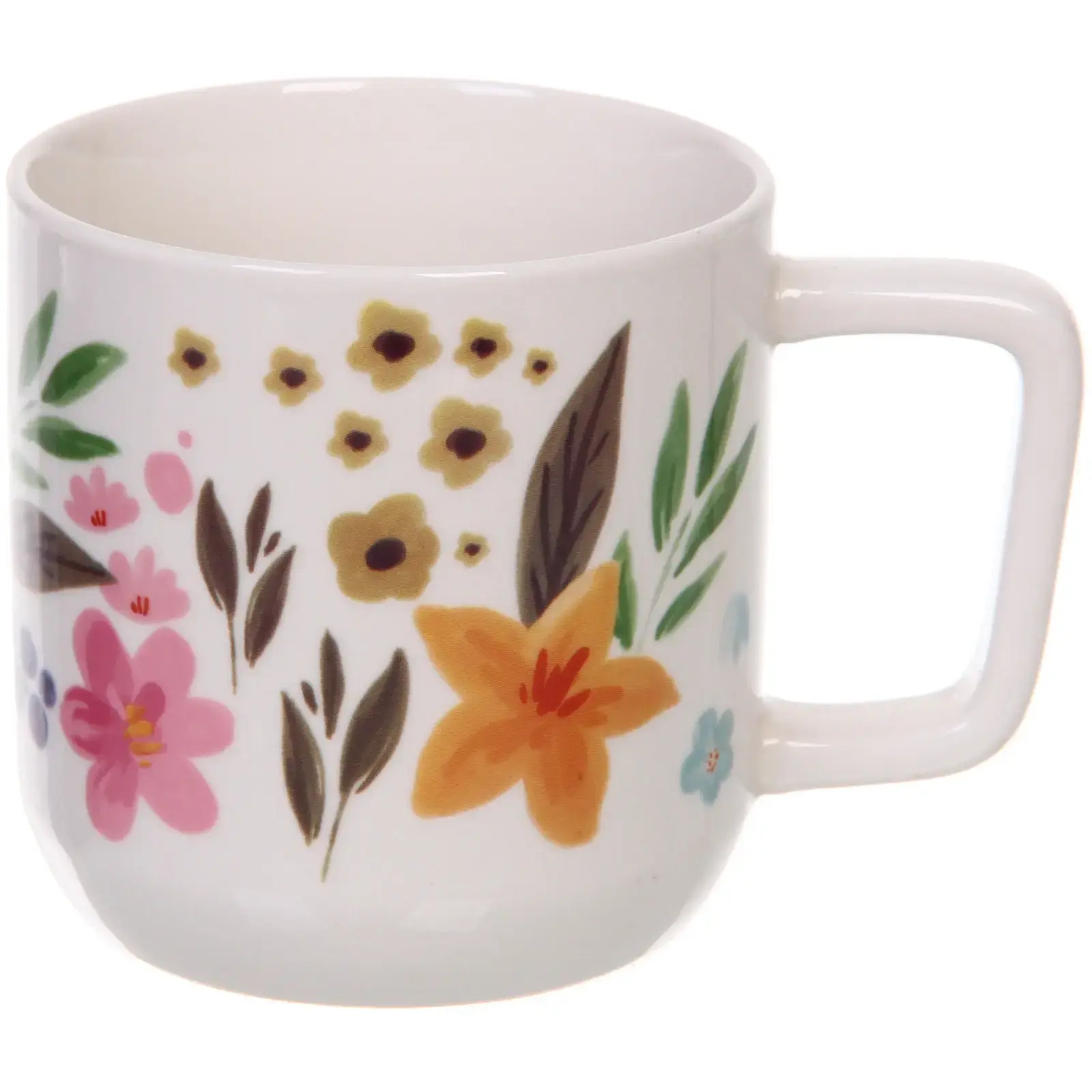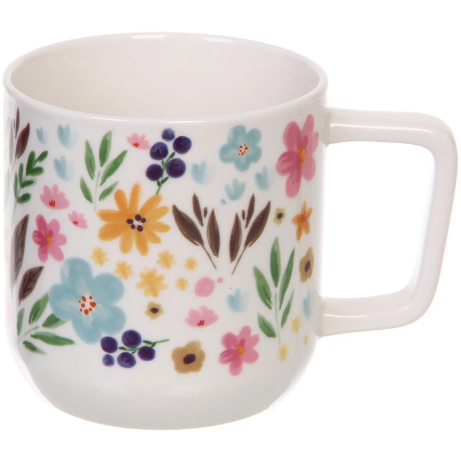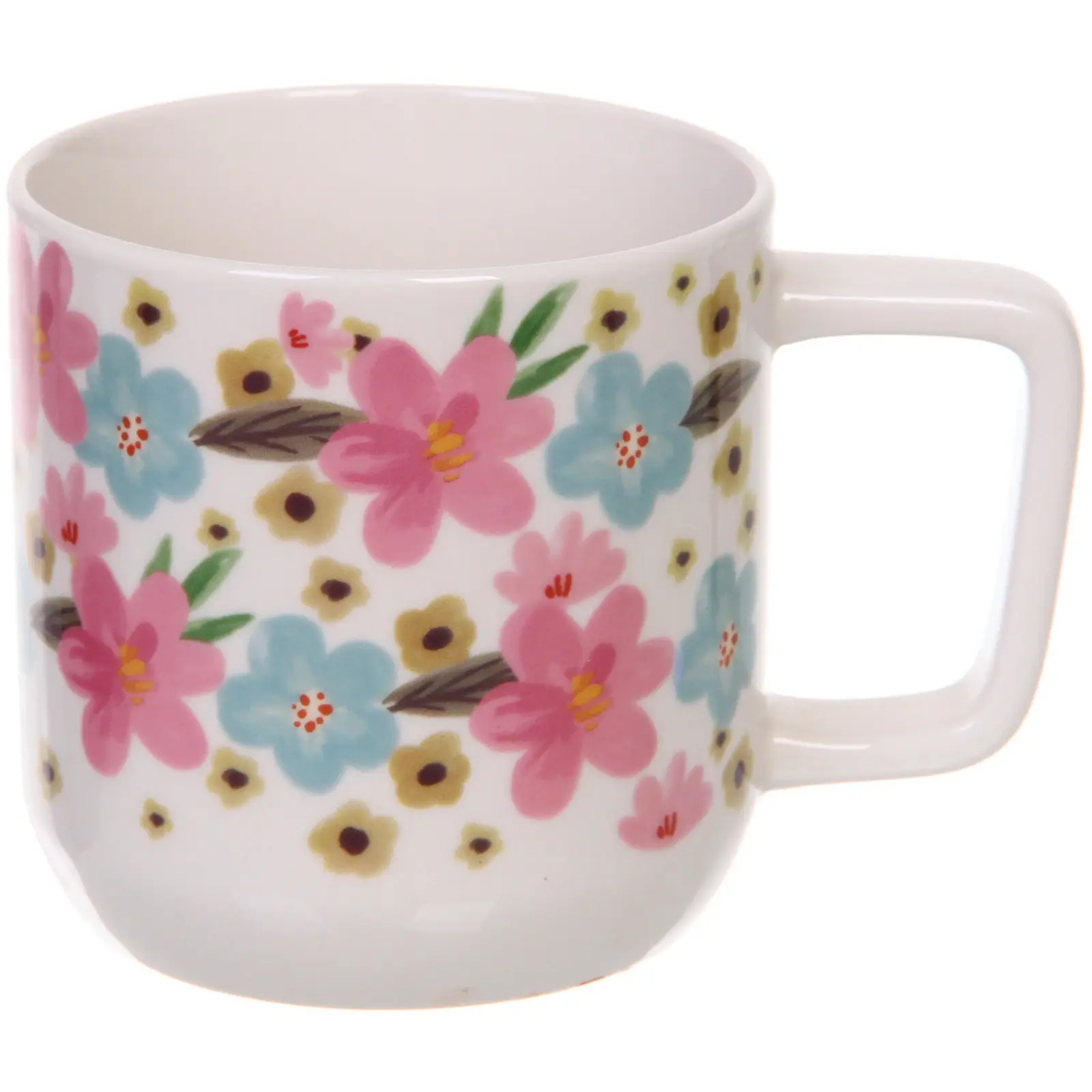 Кружка выполнена из высококачественной керамики, устойчивой к механическим повреждениям. Гладкая поверхность легко моется, а яркий цветочный узор сохраняет насыщенность даже после многократных стирок.