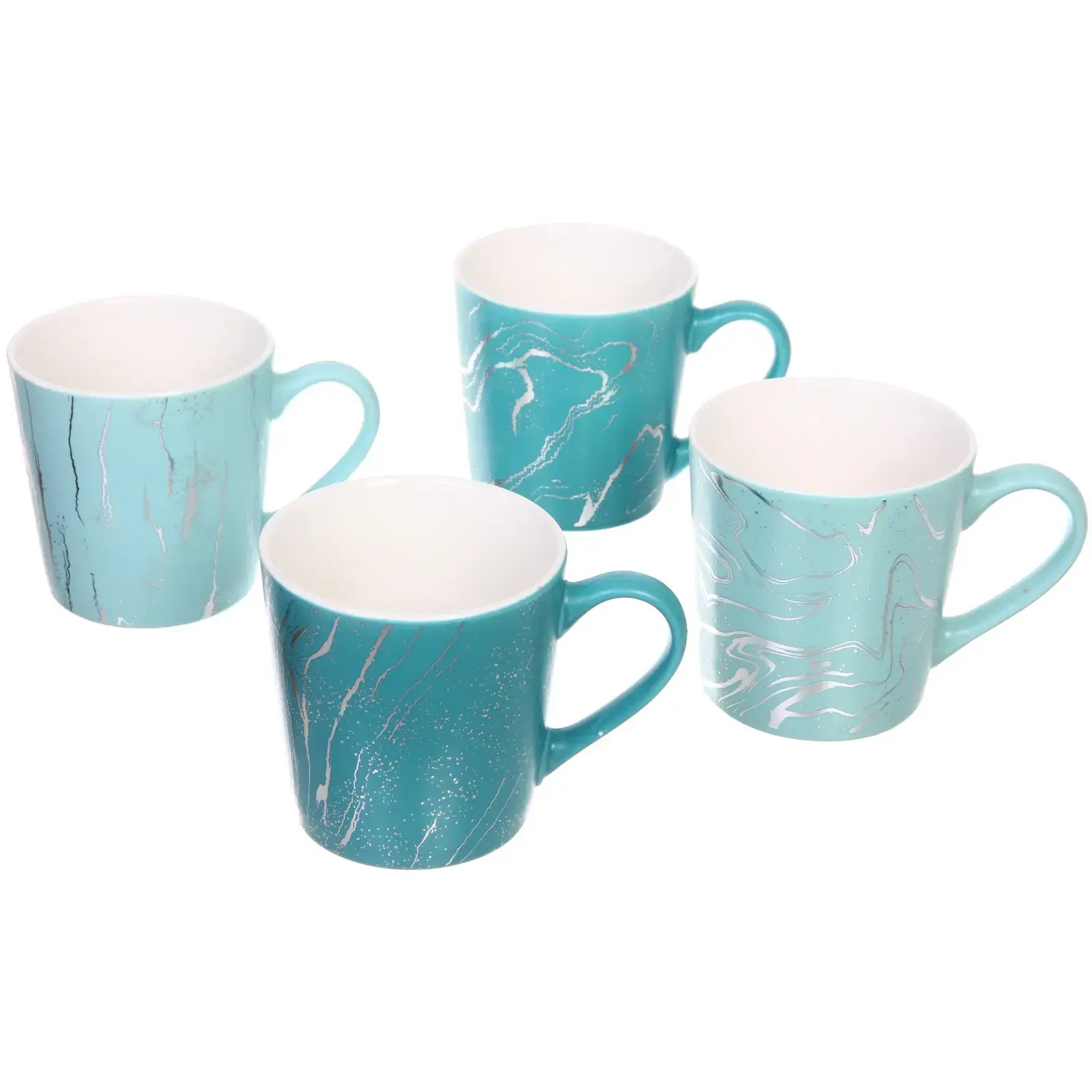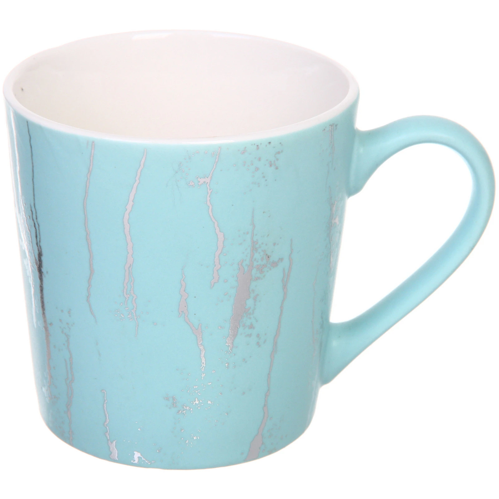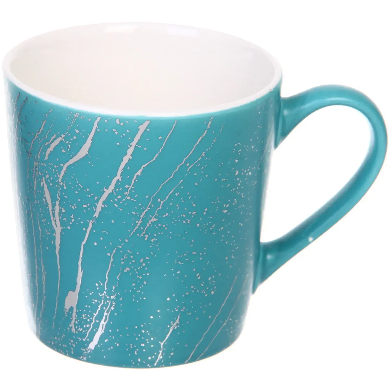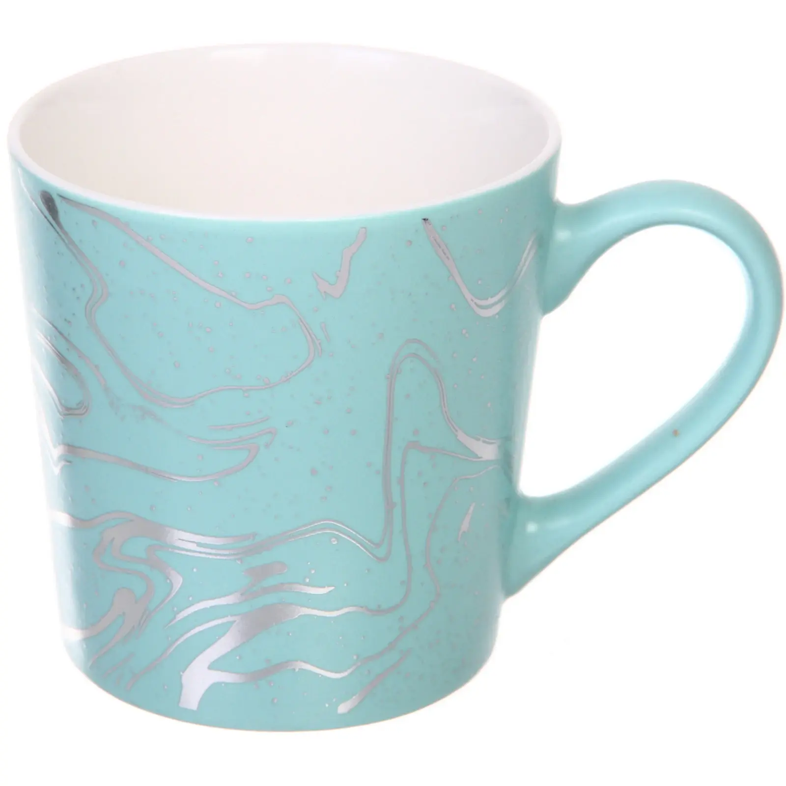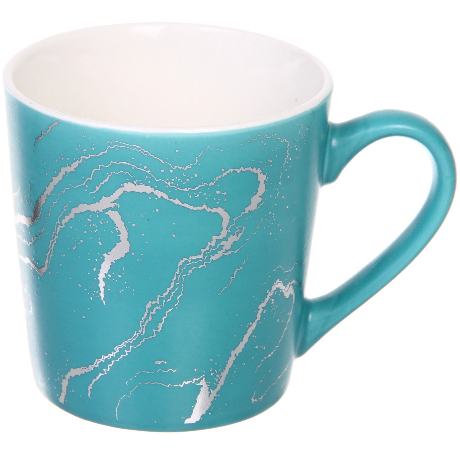 Кружка керамическая 400мл "Малахит", 1 шт., бирюзовая с серебристым узором