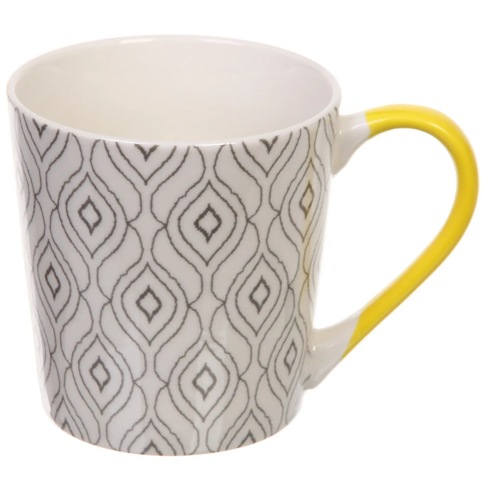 Эта керамическая кружка объемом 400 мл с яркой желтой ручкой и стильным узором станет не только практичным, но и эстетически привлекательным дополнением вашей кухни. Она идеально подходит для подачи горячих и холодных напитков, таких как кофе, чай или освежающие коктейли. Благодаря своему современному дизайну, кружка «Орнамент» добавит яркие акценты в ваш интерьер и создаст атмосферу уюта.