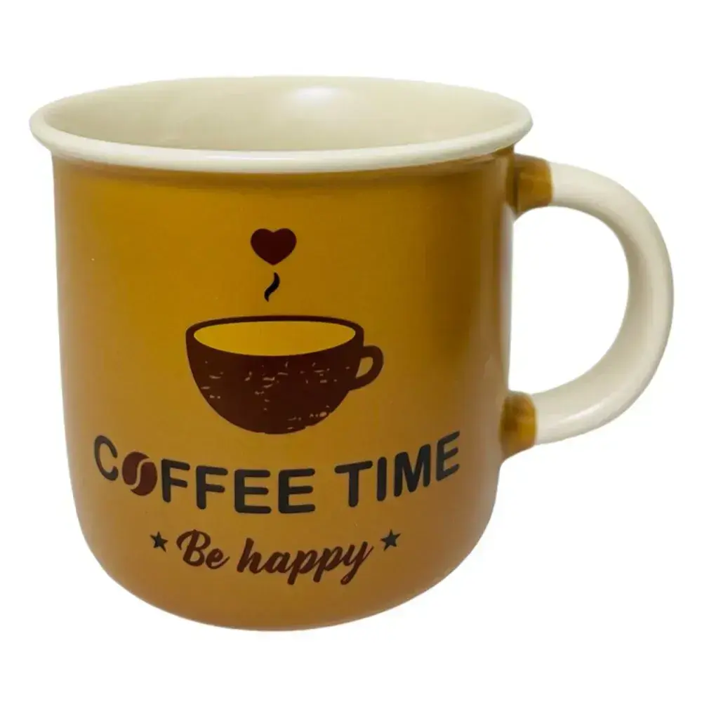 Керамическая кружка "COFFEE TIME" 385 мл, коричневая с бежевым, удобная ручка, дизайн Be happy