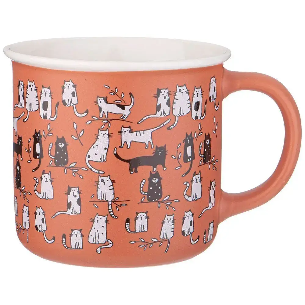 Погрузитесь в атмосферу домашнего тепла с керамической кружкой, украшенной забавными рисунками кошек. Объем 380 мл идеально подходит для утреннего кофе, ароматного чая или любимого какао.