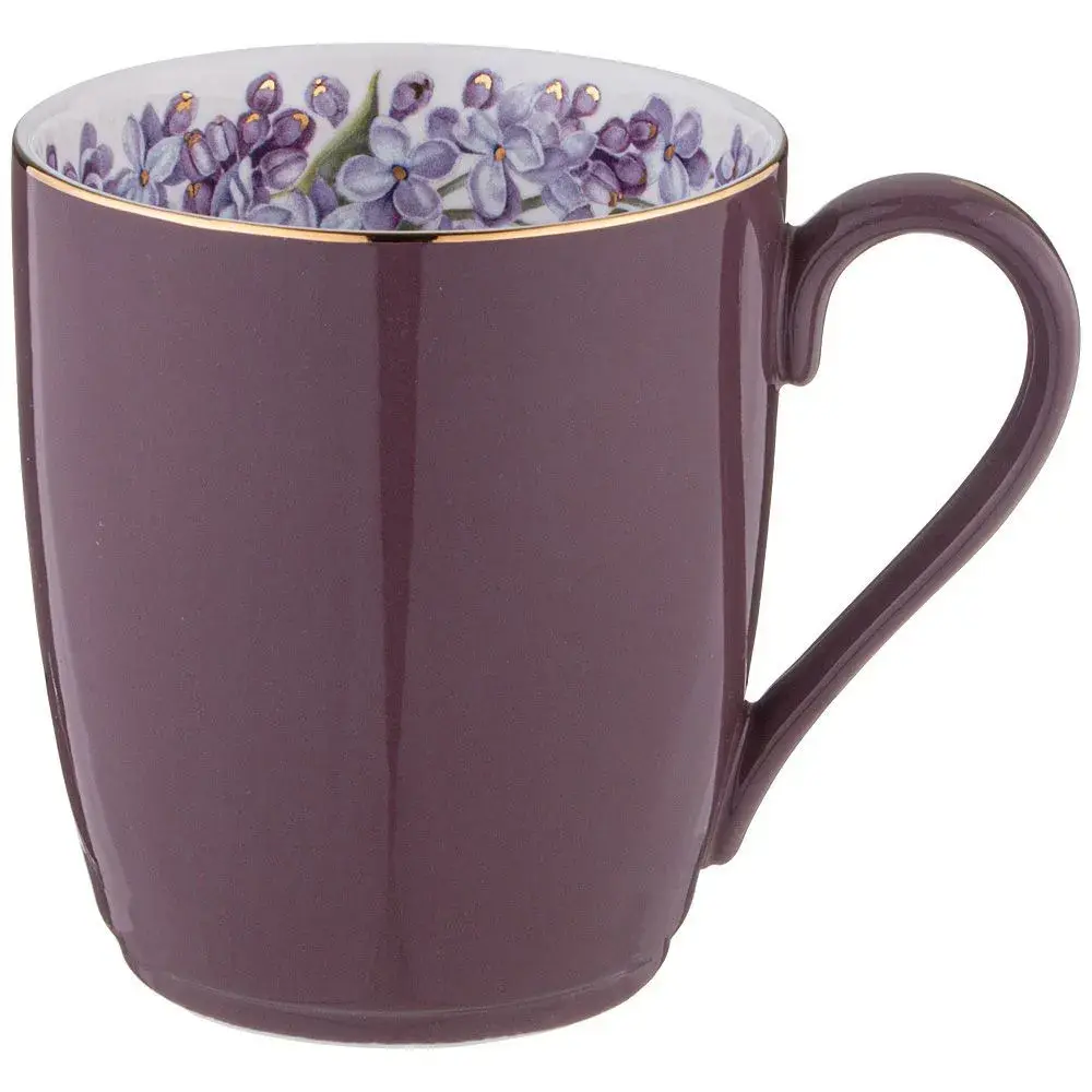 Кружка керамическая Lefard Lilac 300 мл, тёмно-фиолетовая с сиренью, золотая окантовка