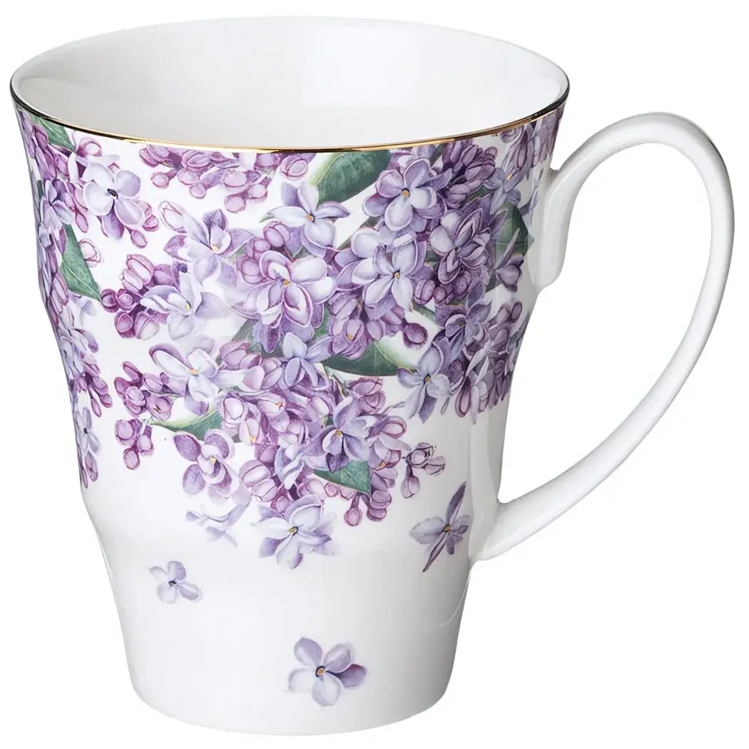 - Элегантный дизайн с цветами сирени и золотой окантовкой придаёт кружке уникальность.