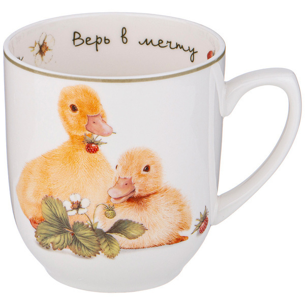 Выбирая кружку «Лови счастье», вы получаете не просто посуду, а источник вдохновения и хорошего настроения. Высококачественный фарфор обеспечивает долговечность и надежность, а яркий дизайн с изображением утят и клубники добавляет радости в каждую чашку. Удобная форма и ручка делают её комфортной в использовании, а красочная упаковка делает её отличным подарком для родных и друзей.