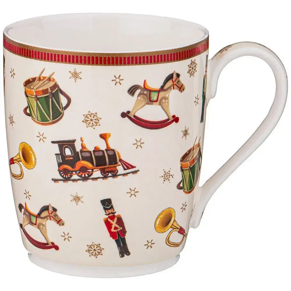 Кружка керамическая Lefard "Щелкунчик" 300 мл, праздничный дизайн с игрушками, белая