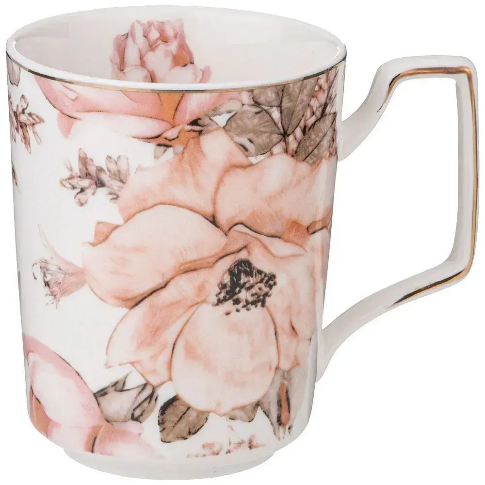 Кружка керамическая Lefard Sentiment 400 мл, цветочный рисунок, золотая окантовка