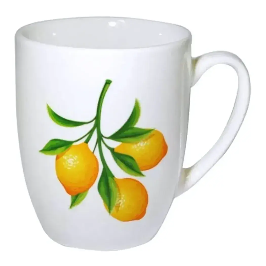 Керамическая кружка с сочным рисунком лимонов добавит свежести в ваши утренние ритуалы. Объем 360 мл идеально подходит для любителей чая и кофе, сохраняя напиток теплым благодаря качественному материалу.