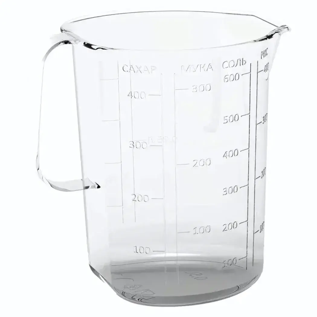 Мерная кружка 0.5л, прозрачная, с ручкой и градациями до 600мл