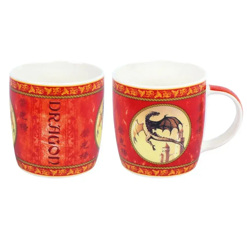 Кружка изготовлена из качественной керамики, что гарантирует устойчивость к перепадам температур. Красный цвет с желтой и золотистой отделкой делает ее привлекательной на вид. Вертикальная надпись "DRAGON" и иероглифы вносят аутентичную нотку.