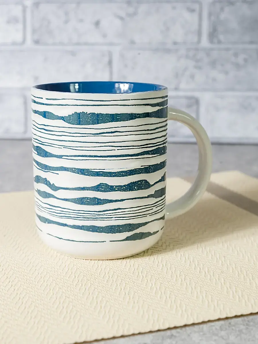 Кружка керамическая «Орнамент» 425 мл, синяя, с удобной ручкой, для горячих напитков