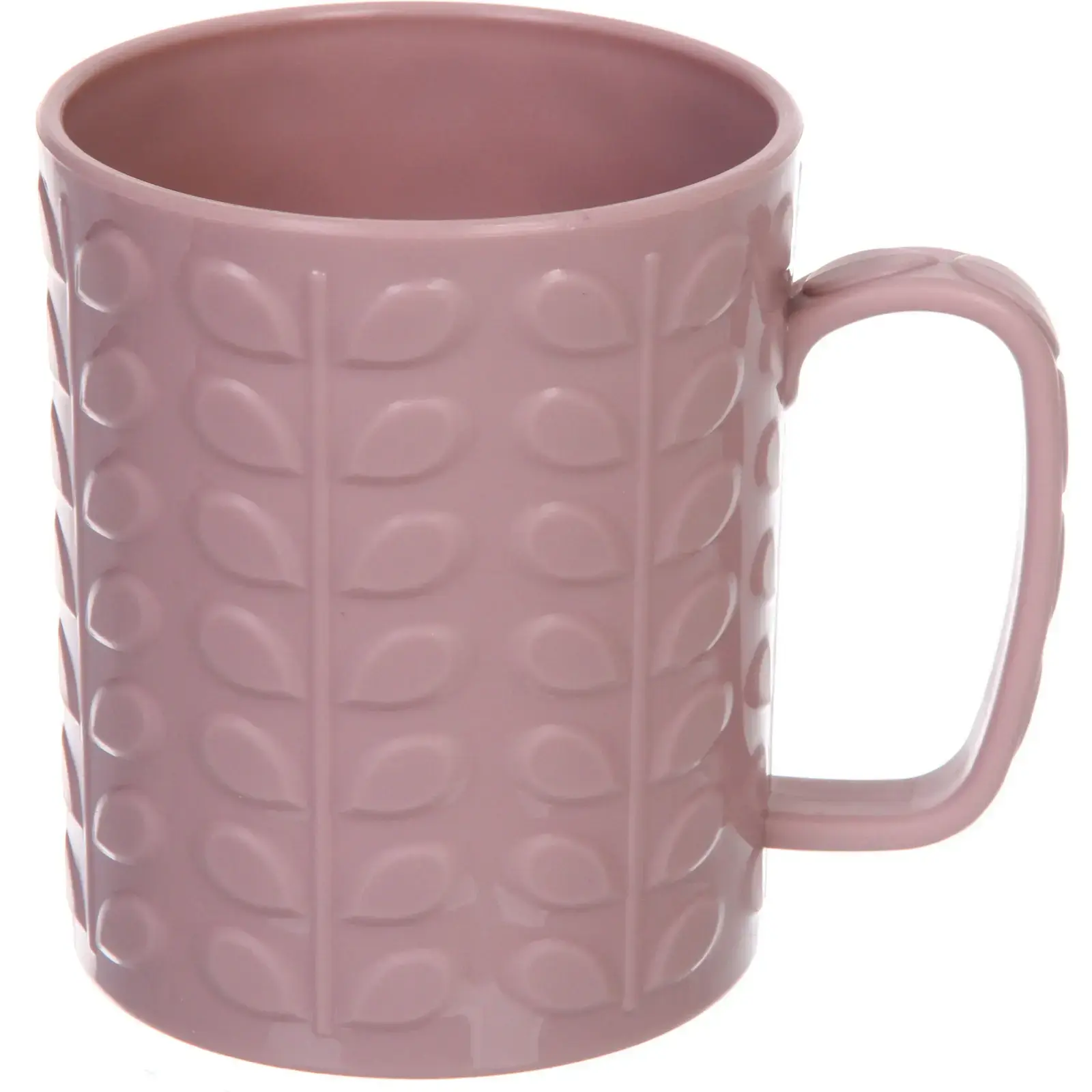 Эта кружка станет идеальным спутником для вашего утреннего кофе или вечернего чая. Сочетание матового пыльного розового цвета и рельефного узора в виде листьев придаёт ей уникальный и стильный вид, который украсит любую кухню. Пластиковый материал обеспечивает лёгкость и долговечность, что делает кружку практичным выбором для повседневного использования.