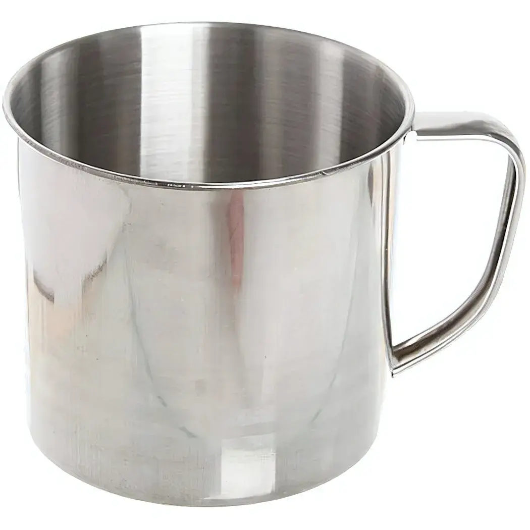 Кружка выполнена из нержавеющей стали, что гарантирует её долговечность и надежность. Она имеет цилиндрическую форму с гладкой, блестящей поверхностью, что делает её не только функциональной, но и стильной. Размеры кружки позволяют удобно помещать её в рюкзак или сумку, а также использовать в различных условиях — от кемпинга до пикника.