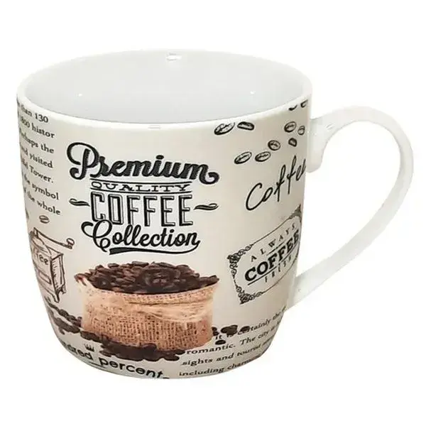 Кружка 'Premium Quality Coffee' 360 мл, белый фон с кофейным принтом, керамика