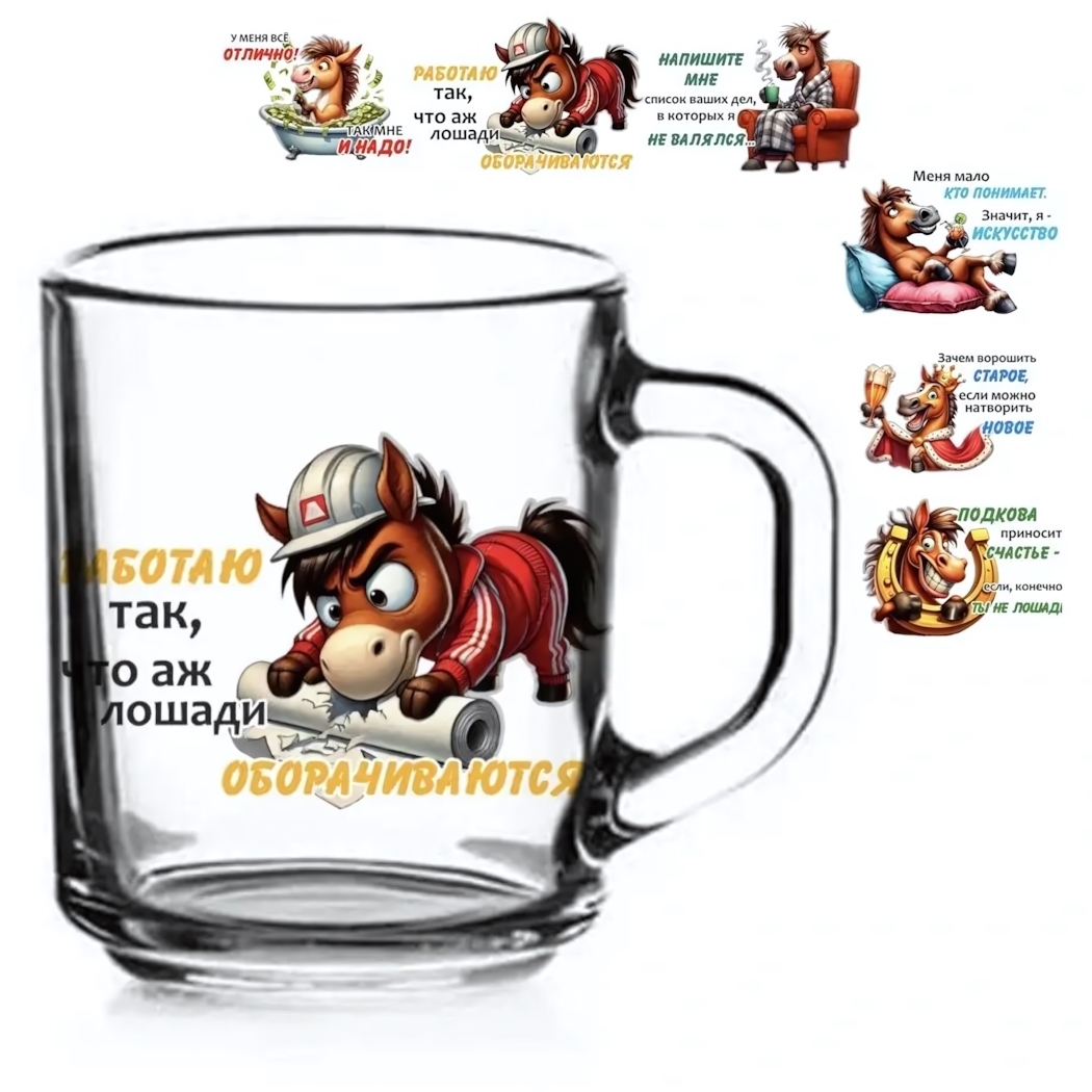 Кружка выполнена из качественного стекла, что обеспечивает долговечность и практичность использования. Она станет не только полезным элементом на вашем столе, но и источником хорошего настроения благодаря забавному и игривому дизайну, который включает множество милых иллюстраций и остроумных фраз.