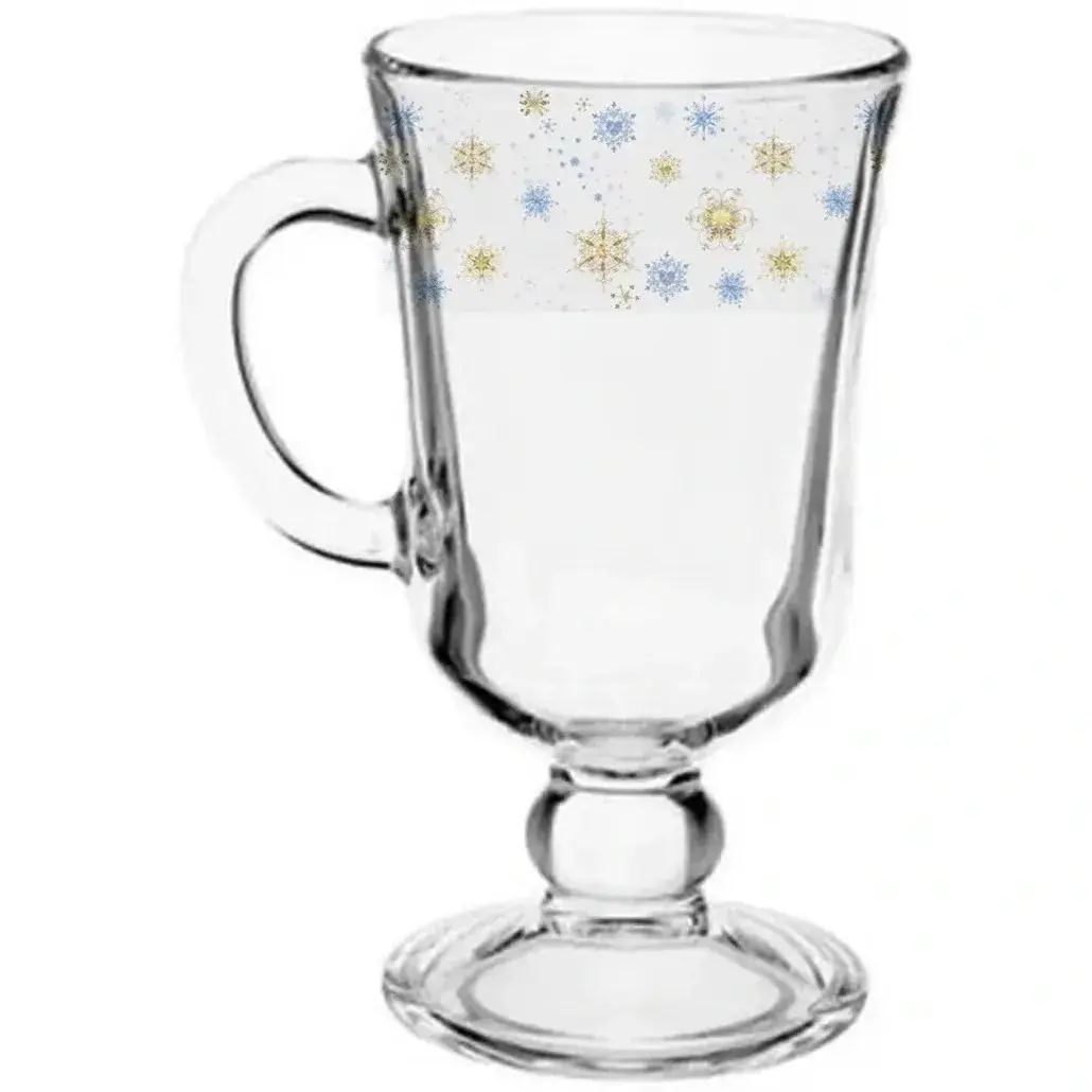 Подходит для горячих чайных и кофейных напитков, а также холодных соков и компотов. Прозрачное стекло раскрывает естественные цвета напитка, а сине‑золотой узор снежинок добавляет нотку зимней сказки.