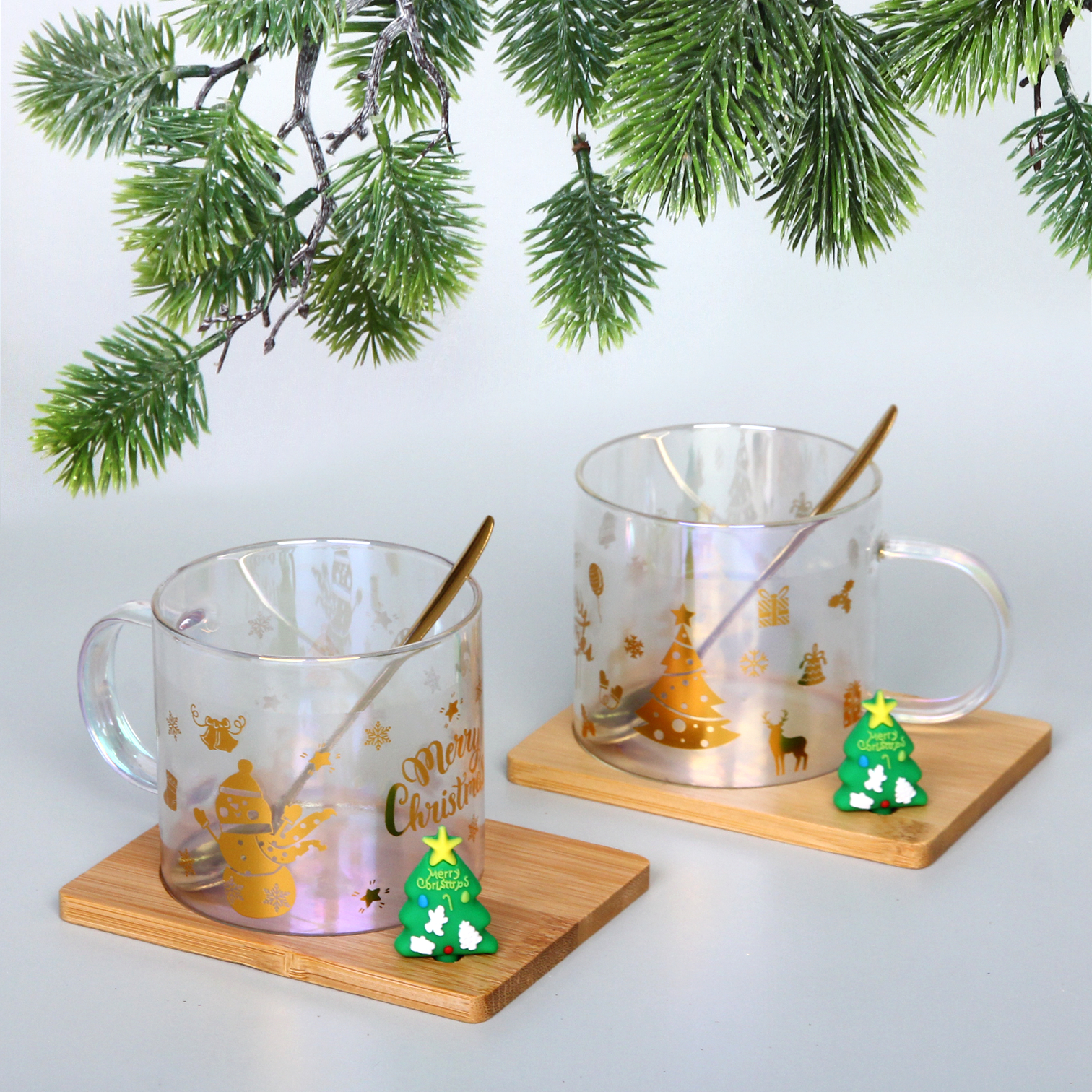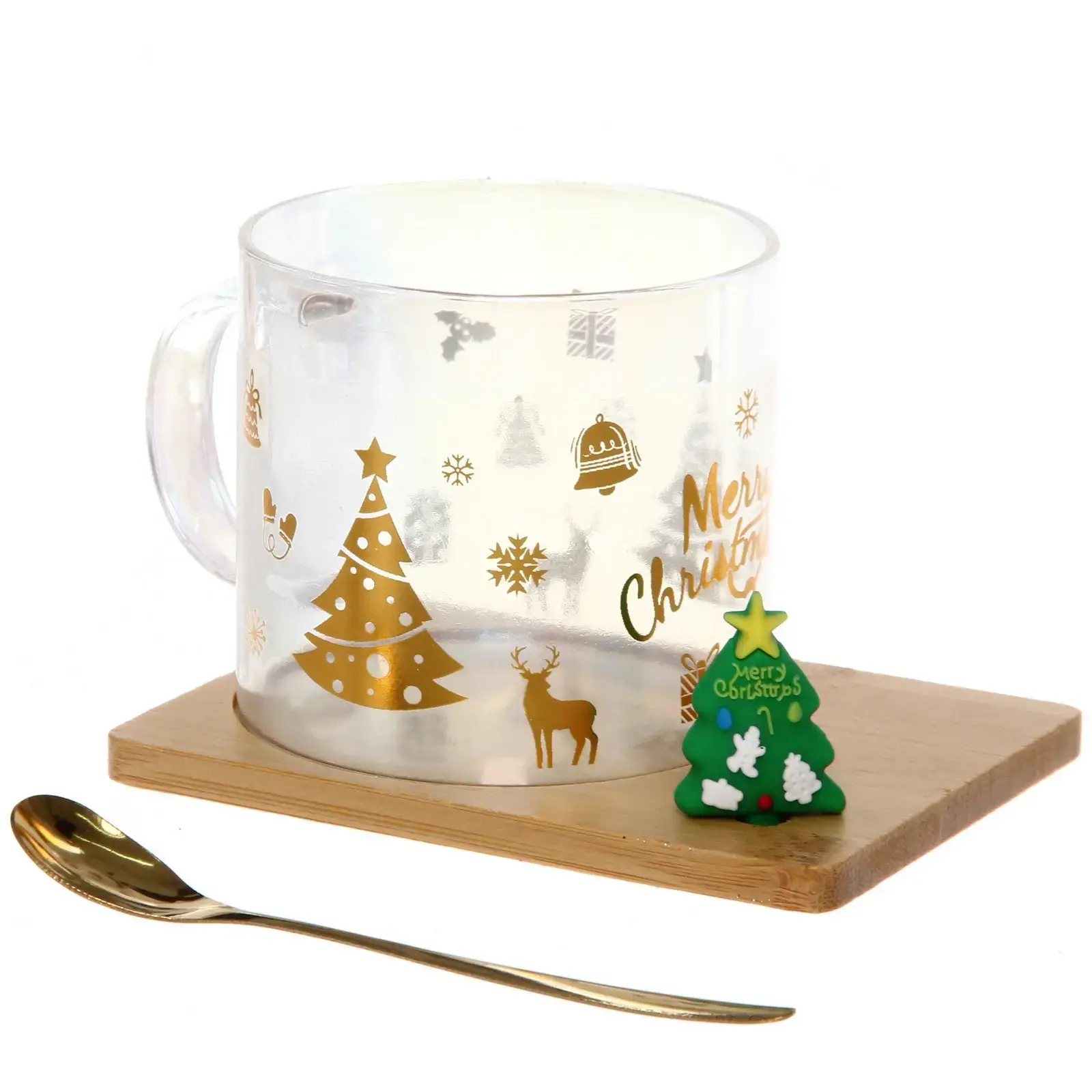 Кружка стеклянная 250мл "Зимняя сказка", с бамбуковой подставкой и ложкой, прозрачная