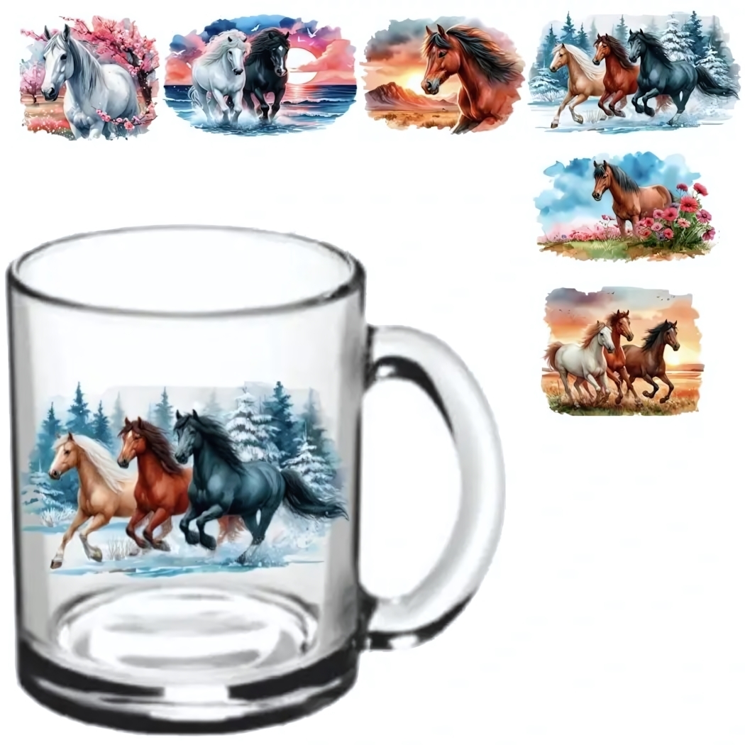 Стеклянная кружка с уникальным дизайном «Сила и Грация» превратит обычный кофе или чай в маленький ритуал наслаждения. Прозрачный корпус, украшенный живописным изображением трёх лошадей в снежном пейзаже, добавит нотку изысканности в ваш дом или офис.