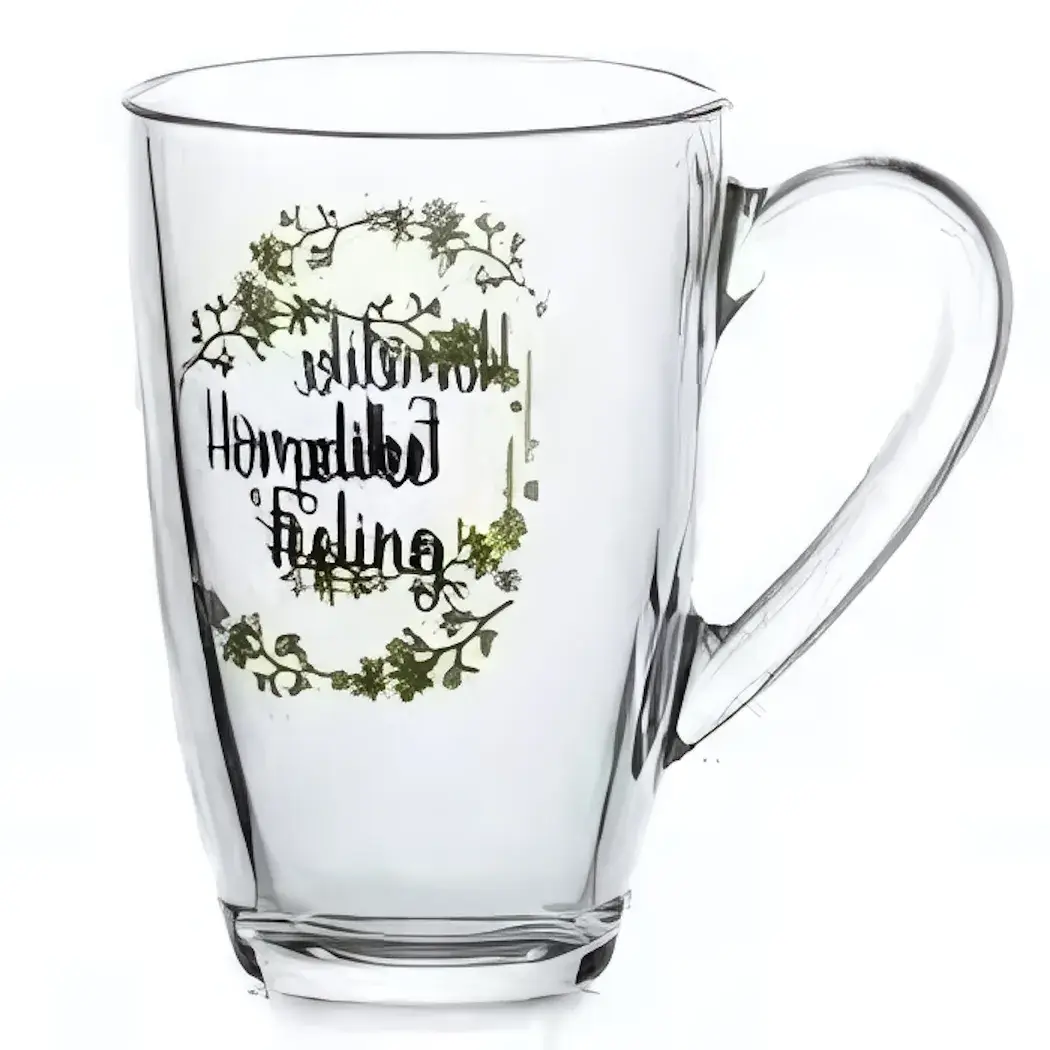 Высота кружки 12 см позволяет комфортно держать её одной рукой. Диаметр основания 7 см обеспечивает устойчивость, а закруглённый край не оставляет следов на губах. Декоративное покрытие нанесено методом термопечати для долговечности рисунка.