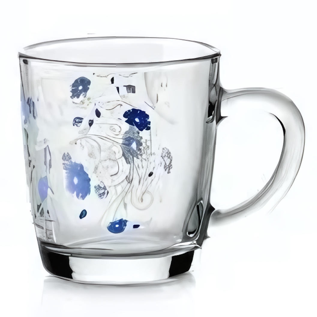 Кружка стеклянная 340мл 'Серенейд', голубой декор, удобная ручка