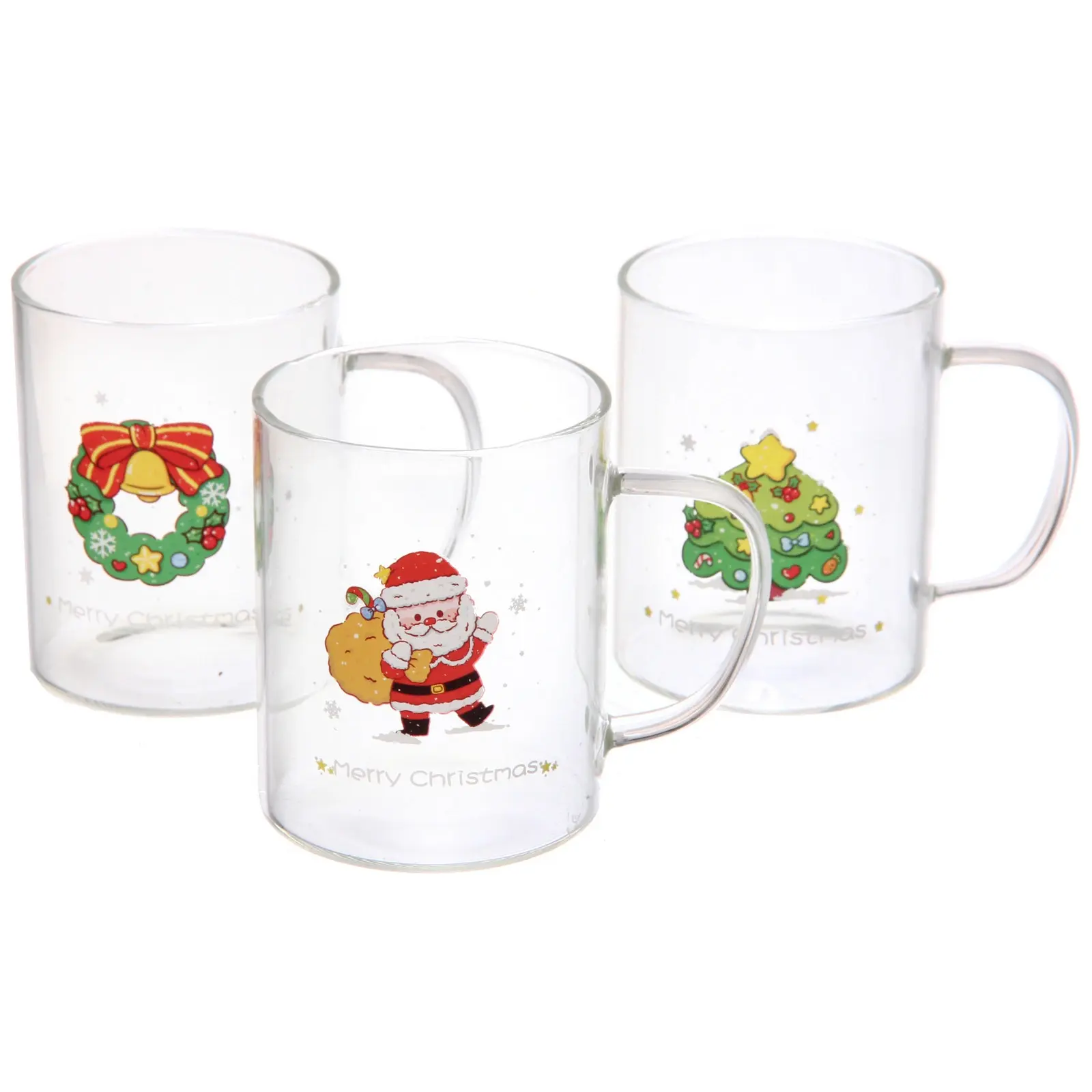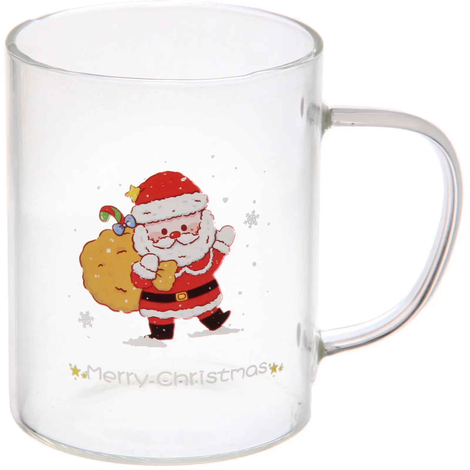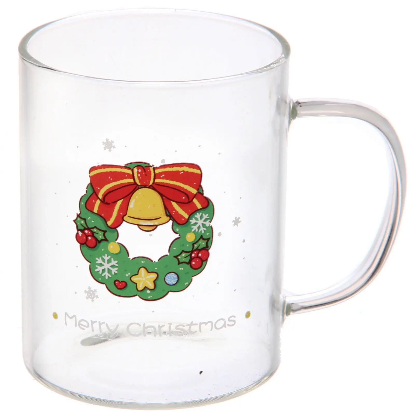 Кружка стеклянная 420мл, рисунок в ассортименте, новогодний дизайн