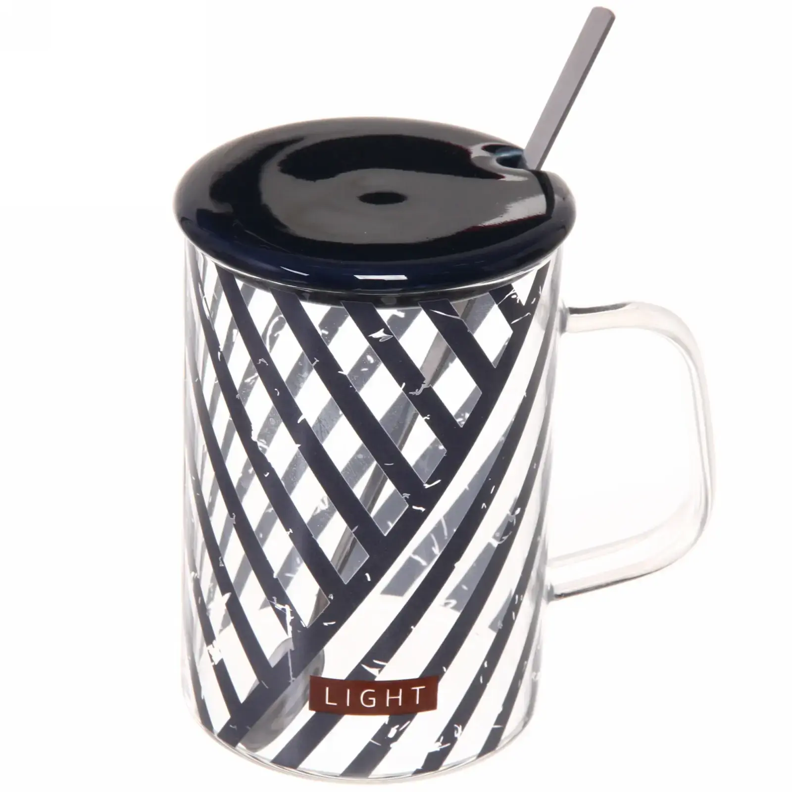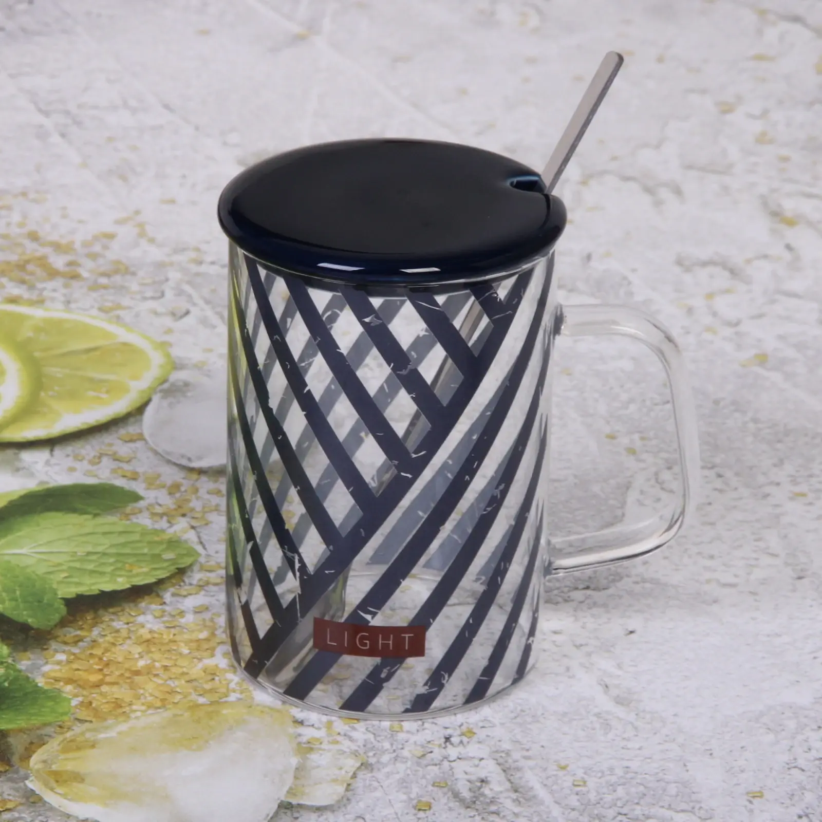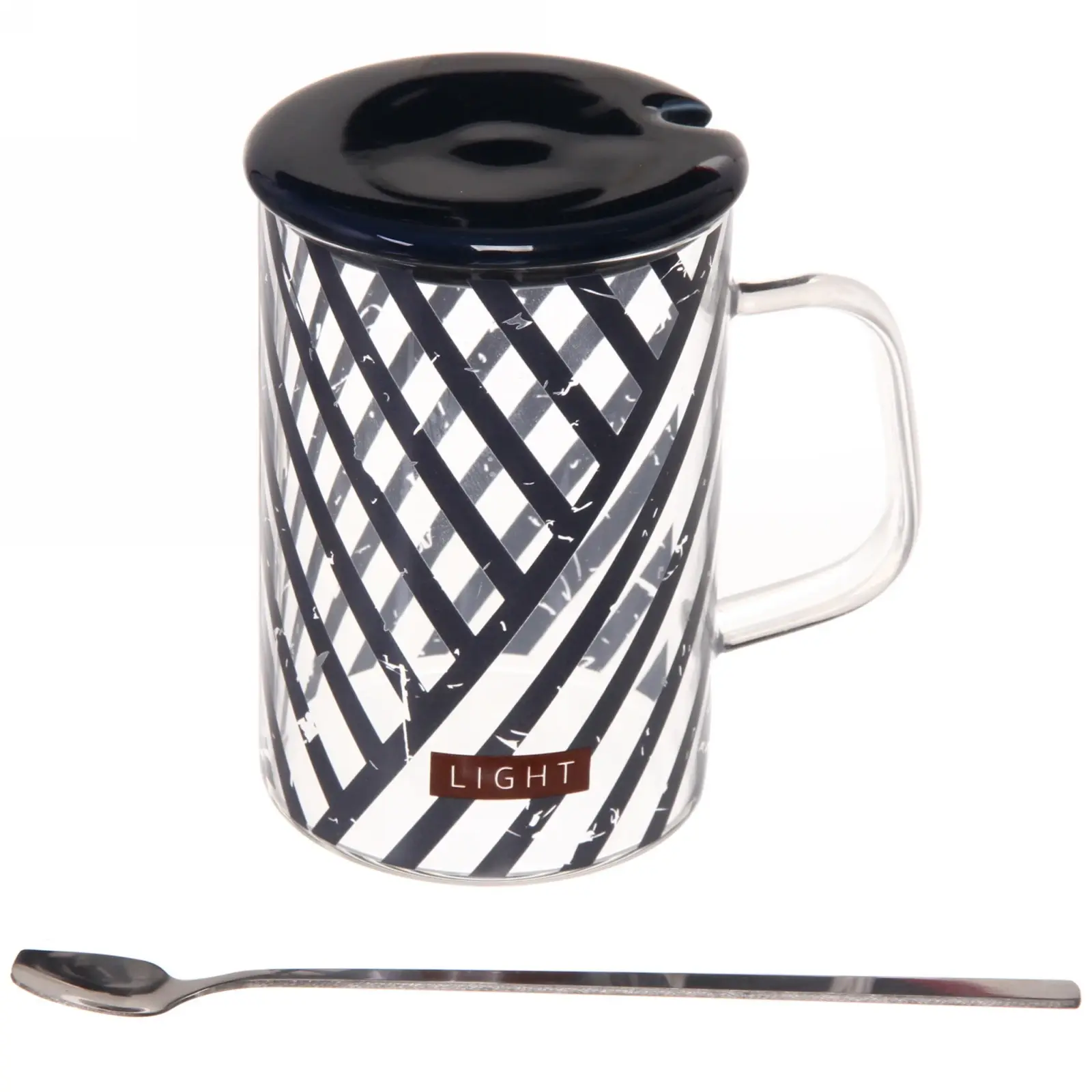 Кружка стеклянная с крышкой, ложкой и трубочкой «Геометрия», 450 мл, для холодных напитков