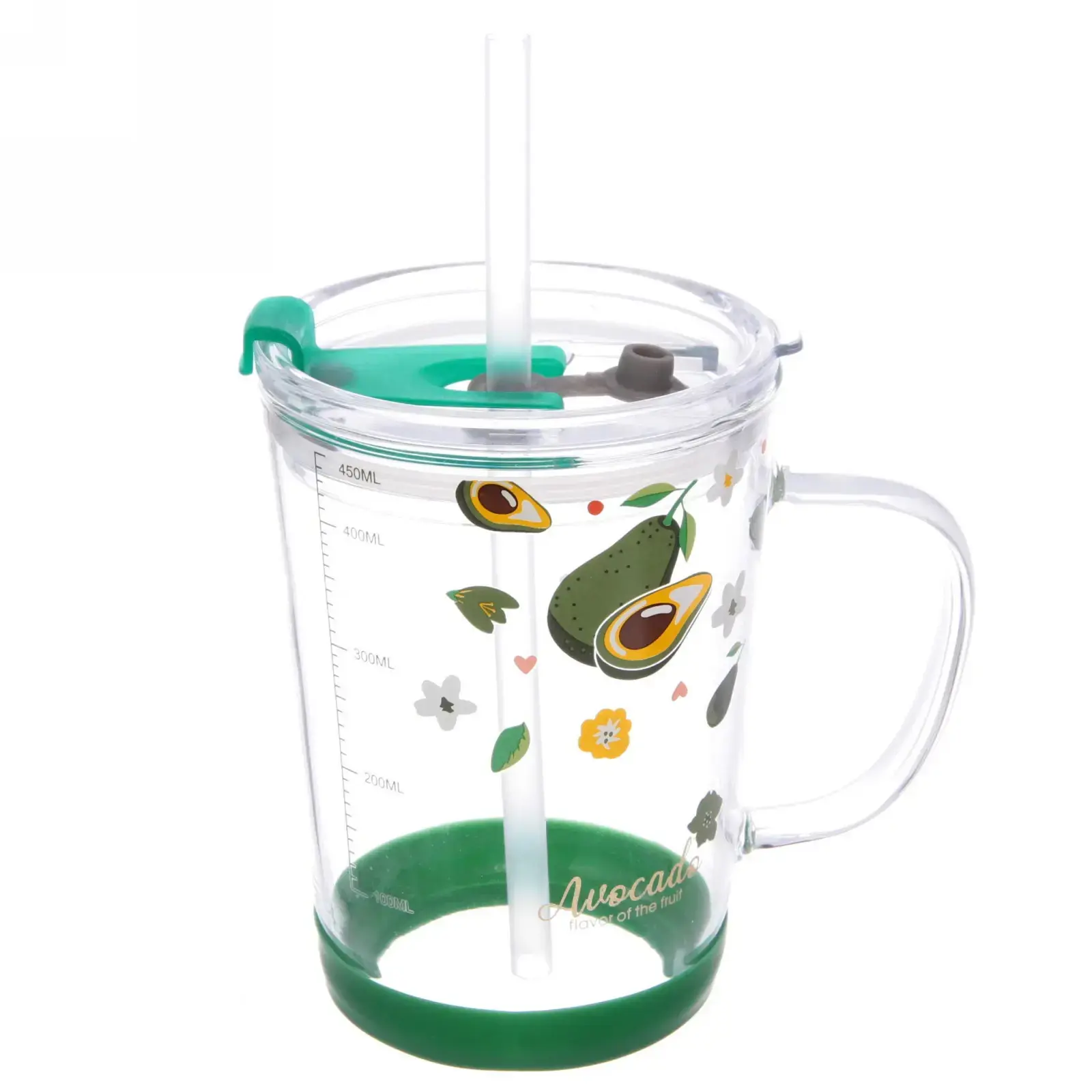 Кружка оснащена крышкой с отверстием для трубочки, что позволяет удобно пить напитки, не боясь пролить их. Объем 450 мл идеально подходит для соков, смузи или холодного чая. Прозрачные стенки позволяют контролировать количество оставшегося напитка, а мерные деления на стенке помогут вам точно отмерить нужный объем. Кружка легка в уходе и подходит для мытья в посудомоечной машине.