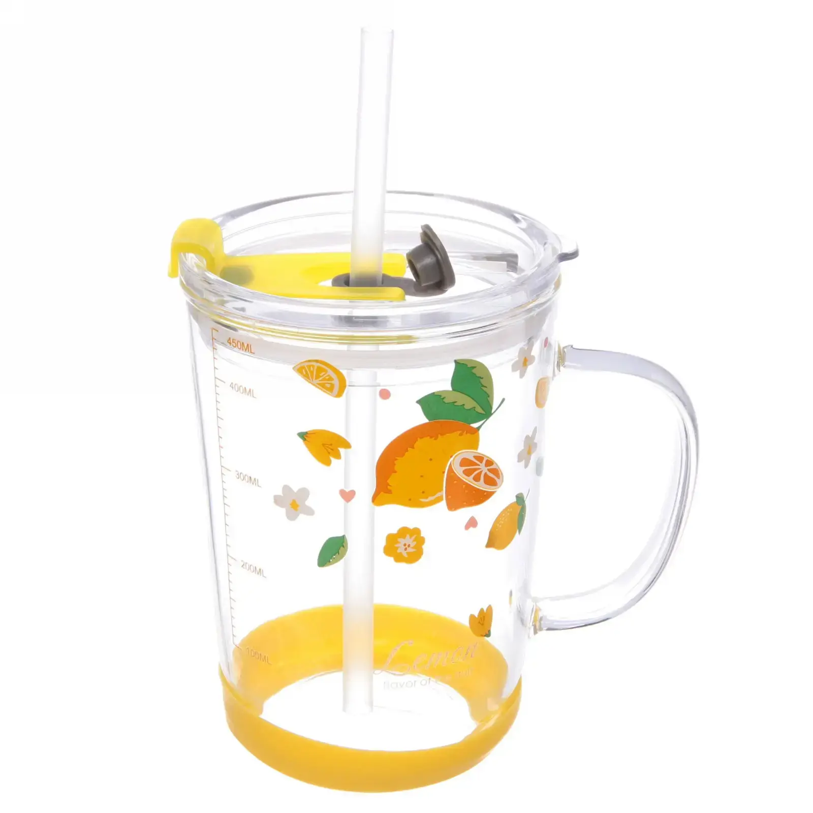 Кружка стеклянная 450мл с крышкой и трубочкой «Лимоны»