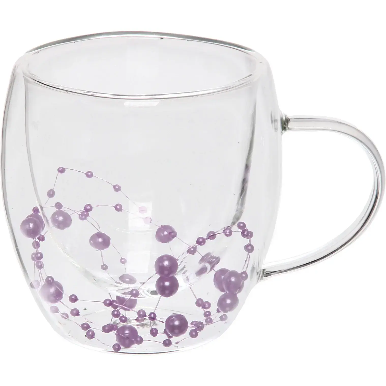 Кружка с двойными стенками «Хай-Тек» 250 мл, термостойкое стекло, сиреневый декор
