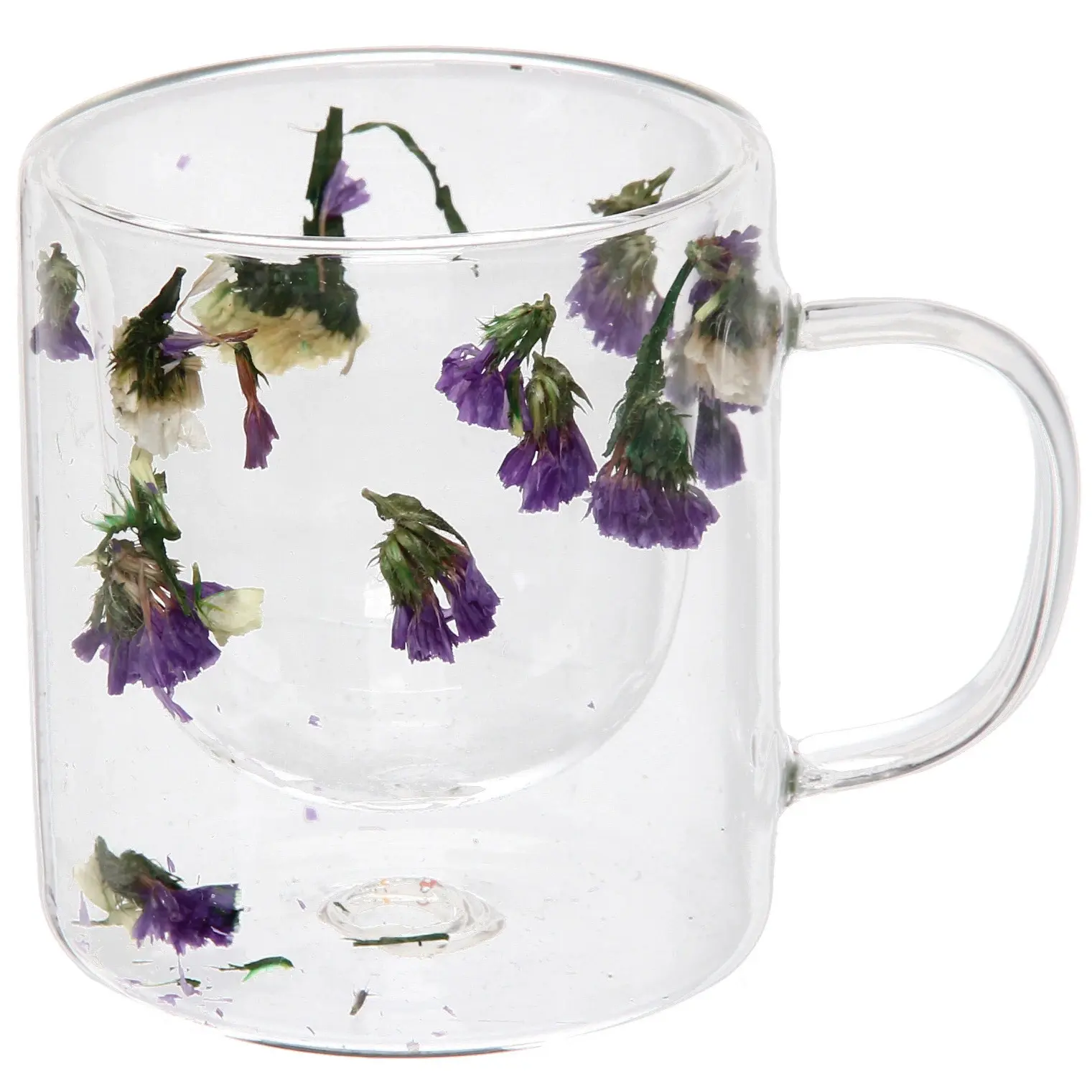 Стеклянная кружка с двойными стенками сохранит аромат вашего утреннего кофе и прохладу летнего лимонада. Декоративные цветы внутри создают неповторимый дизайн, превращая обычный ритуал в наслаждение.