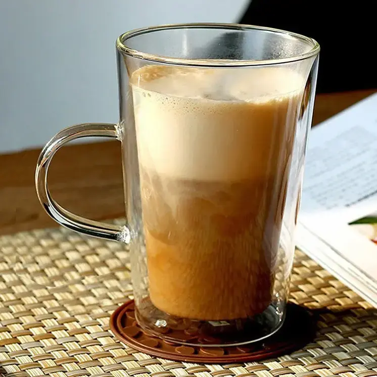 Кружка идеально подходит для подачи горячих напитков, таких как кофе, чай или молочные коктейли. Благодаря прозрачному стеклу вы сможете наслаждаться красотой слоев вашего напитка, а удобная ручка обеспечивает надежный захват. Эта кружка станет отличным дополнением к вашей кухонной посуде и подойдет как для домашнего использования, так и для кафе.