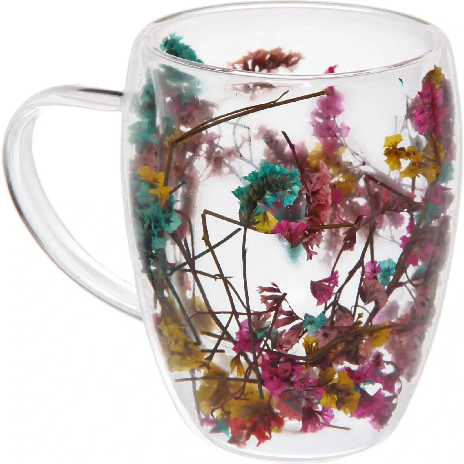Сохраняет температуру напитков и создаёт уютную атмосферу благодаря встроенной композиции из сухоцветов. Двойные стенки из боросиликатного стекла защищают от ожогов и конденсата, сохраняя напитки горячими или холодными до 2 часов.