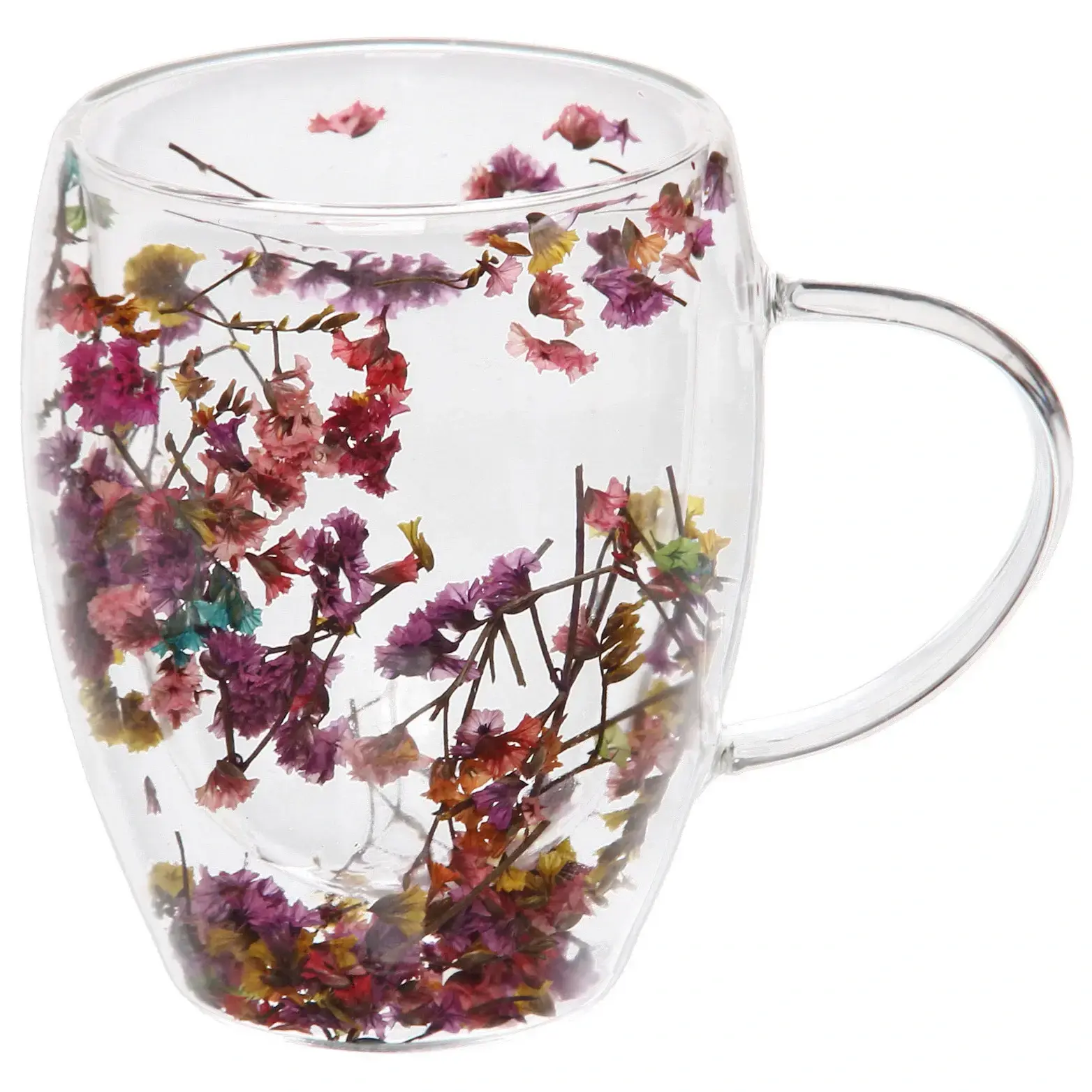 Кружка стеклянная 'Хай-Тек' 350мл, двойные стенки, цветы внутри, термостойкое стекло