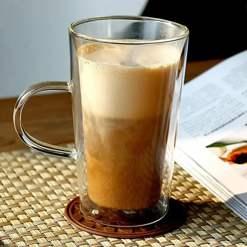 Кружка идеально подходит для использования дома или в офисе. Благодаря своей прозрачной конструкции, вы можете наслаждаться визуальным эффектом слоев напитка, что делает каждую чашку уникальной. Удобная ручка из стекла обеспечивает надежный захват, а цилиндрическая форма позволяет легко мыть кружку в посудомоечной машине.