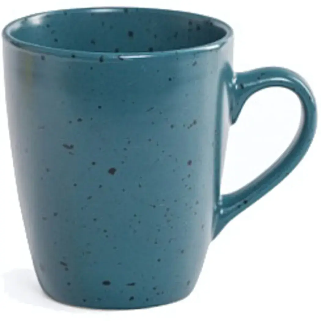Эта стильная кружка керамическая TRENDY объемом 360мл станет идеальным спутником для вашего утреннего кофе или чая. Сочетание сине-зеленого цвета с мелкими точками придаёт ей уникальный и современный вид, который украсит любую кухню. Благодаря конусообразной форме, кружка удобно лежит в руке, а тонкие стенки делают её легкой и приятной на ощупь.