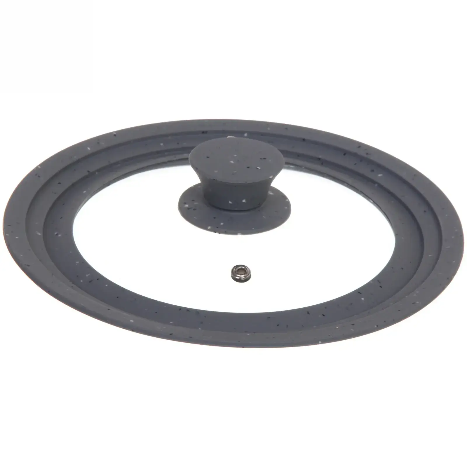 Крышка выполнена в сером цвете с белыми вкраплениями, что придаёт ей стильный вид. Она легко моется и не требует особого ухода. Эта крышка станет отличным дополнением к вашей кухонной утвари, обеспечивая не только практичность, но и эстетическое удовольствие.